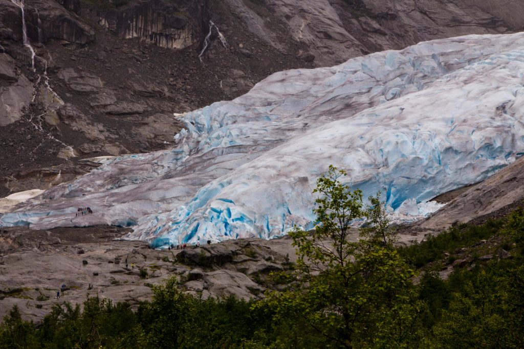 Noch nie war ich einem Gletscher so nah… außer vielleicht beim Skifahren im Stubaital… aber das hier war anders. Wir fahren zum Jostedalbreen Nationalpark und finden nahe des Besucherzentrums Breheimsenteret auch gleich die Einfahrt zum Gletscherparkplatz… mit Schranke und Maut. Ansonsten muss man zusätzliche 8km Wanderung auf schnurgerader Asphaltstrasse in Kauf nehmen.