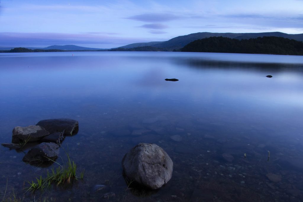 Gegen Abend wirds dann wieder traumhaft schön. Obwohl die Midges um den Sonnenuntergang herum wirklich unerträglich sind und ich mir heiß und sehnlichst einen Hut mit Mückennetz wünsche, hält mich doch nichts im Womo und ich fotografiere bis in die Mitte der Nacht, als sich die Farben des Sees von gold, blau, schwarz bis ins rote verfärben.