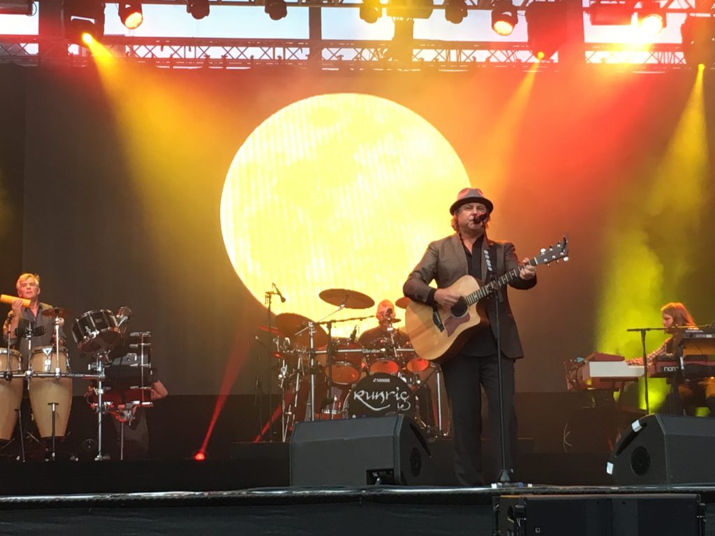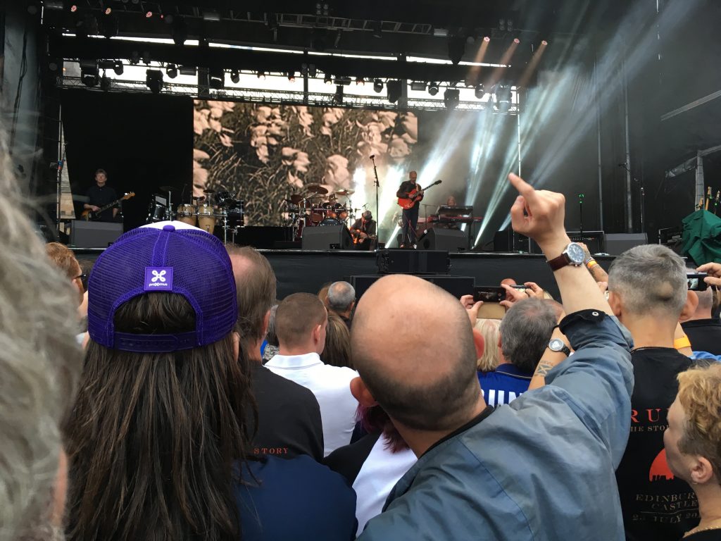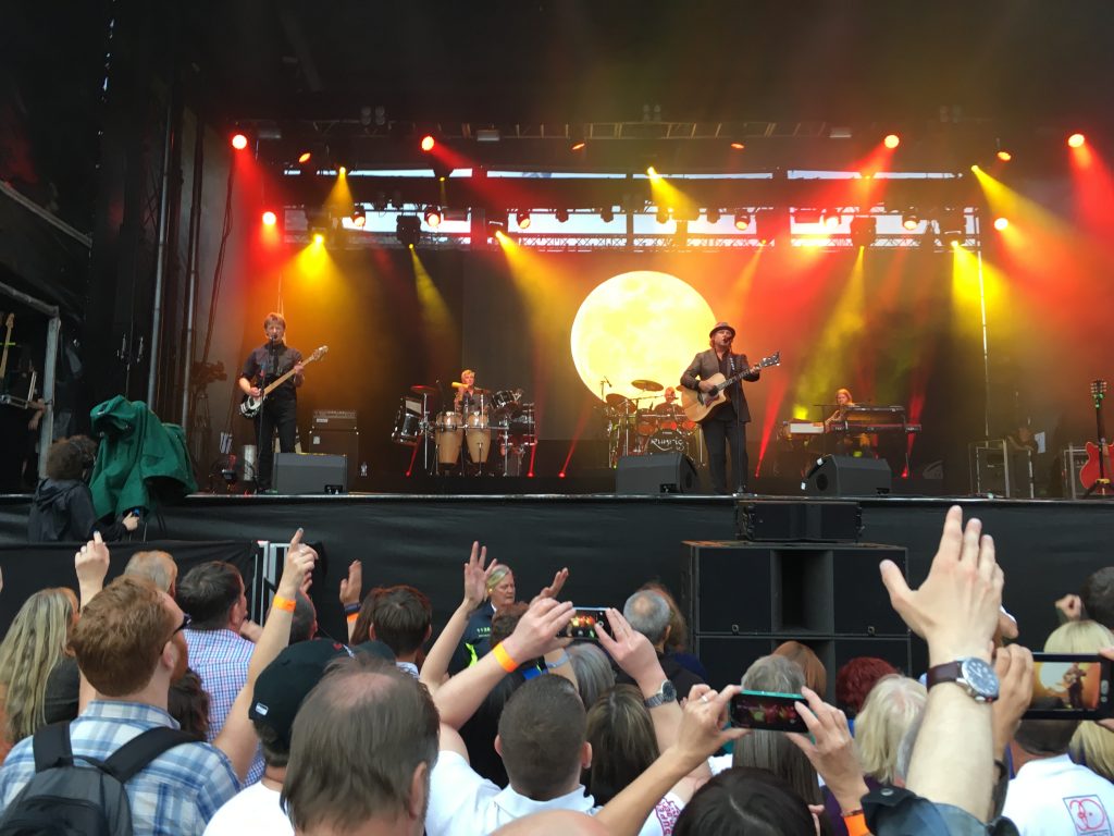 Am Abend bin ich dann ziemlich pünktlich am Castle und es hat sich schon eine 200m lange Schlange gebildet. No way! Da stelle ich mich nicht an – ich habe ne Karte!! Also Käffchen und Leute beobachten. Und als ich mich gerade entschließe, noch ein paar Fotos der Fans zu schießen, beginnt der Einlass und die Frau neben mir sagt: „Just go!“ und tritt das rot-weiße Absperrband mit gekonnter Gelassenheit zu Boden. So lande ich in der dritten Reihe mitten im Fanblock und komme mir irgendwie deplatziert vor. Ich kenne die Band gar nicht und alle um mich herum benehmen sich wie bei einem lange ersehnten Familientreffen. Skurril!