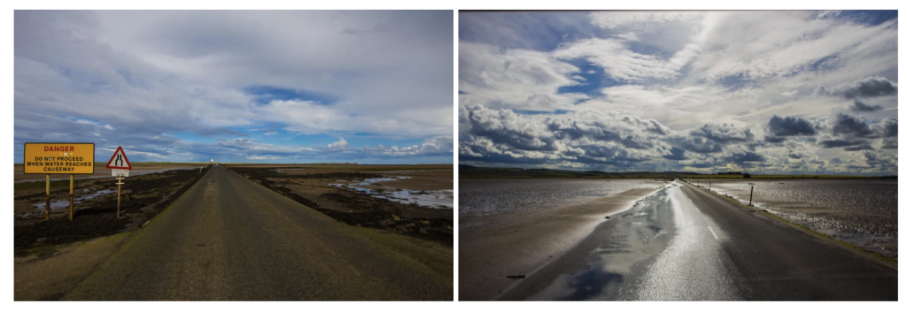 Weiter gehts zur Holy Island, einer kleinen Insel, die man über eine Straße erreicht. Aber nur bei Ebbe…