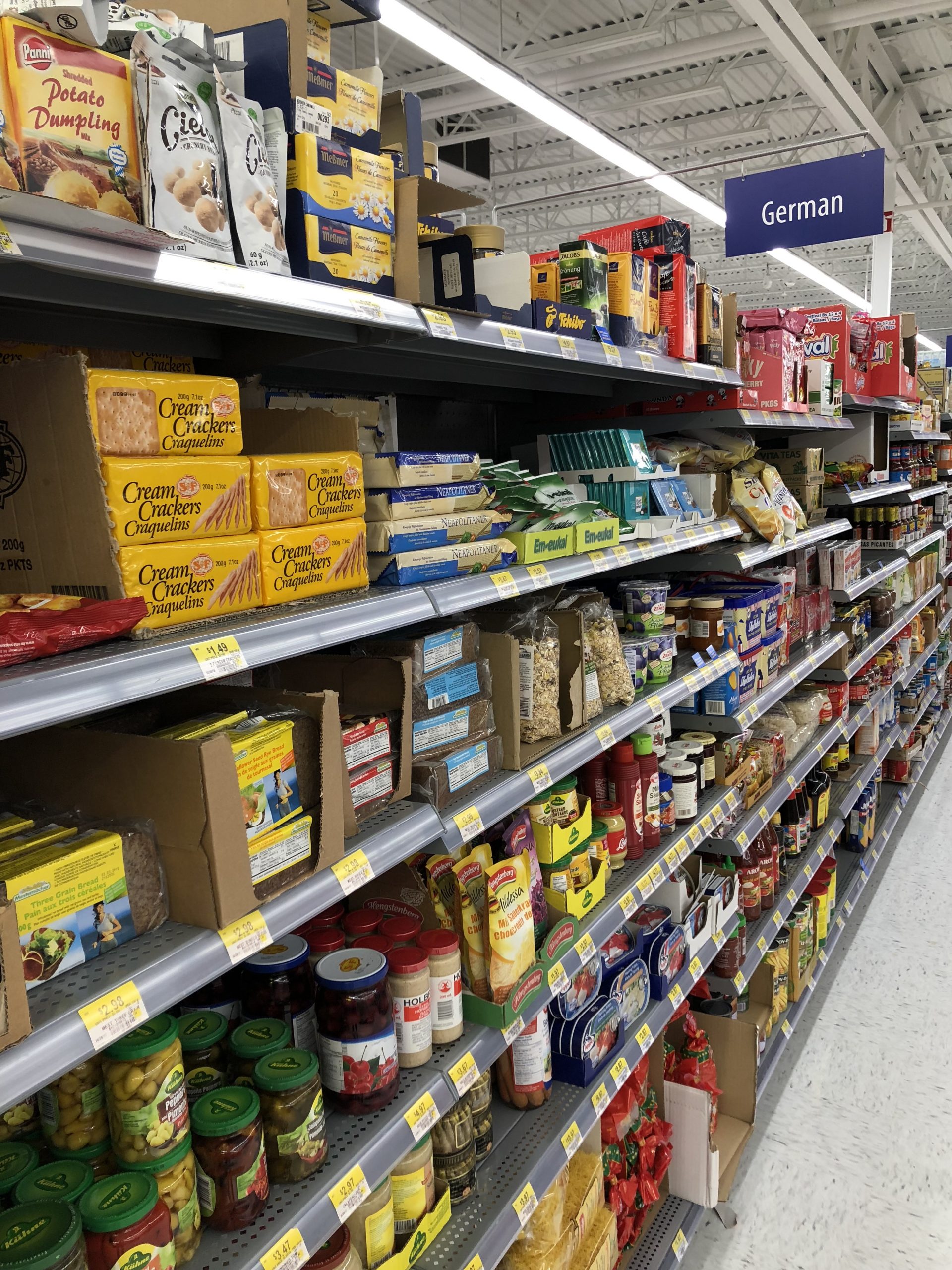 Die Übernahme bei Cruise America erfolgt wie im Flug und nach kaum 20 min fahre ich schon in Richtung Tsawassen Fähre. Unterwegs ein kurzer Stopp bei Walmart – ich muss mich eindecken, weil Brian morgen nichts mehr serviert! Dort gibt es neben „allem“ sogar ein Regal, extra für Deutsche: