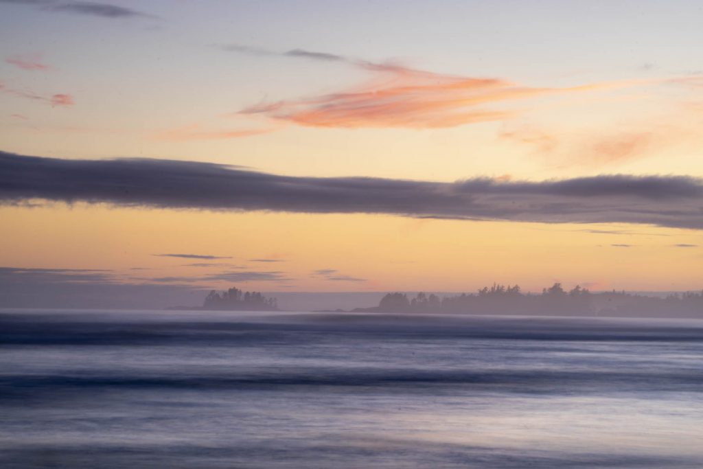 Der Abend beschert uns dann noch eine recht schöne Stimmung am Meer. Um dahin zu gelangen, läuft man die Wanderwege durch den Wald hinunter und landet direkt am Long Beach. Einige Camper machen sich mit mir auf den Weg und genießen die Stimmung: