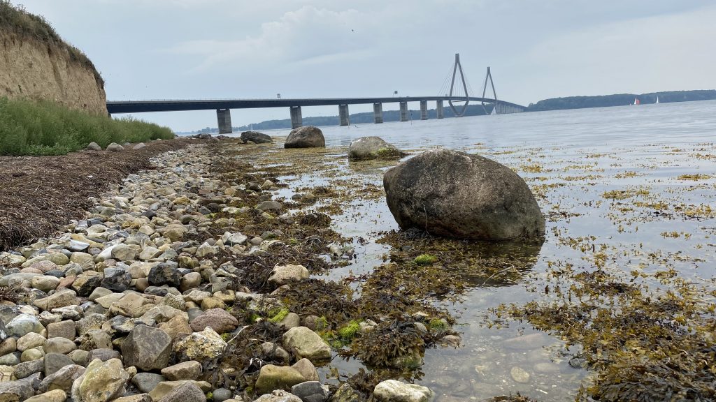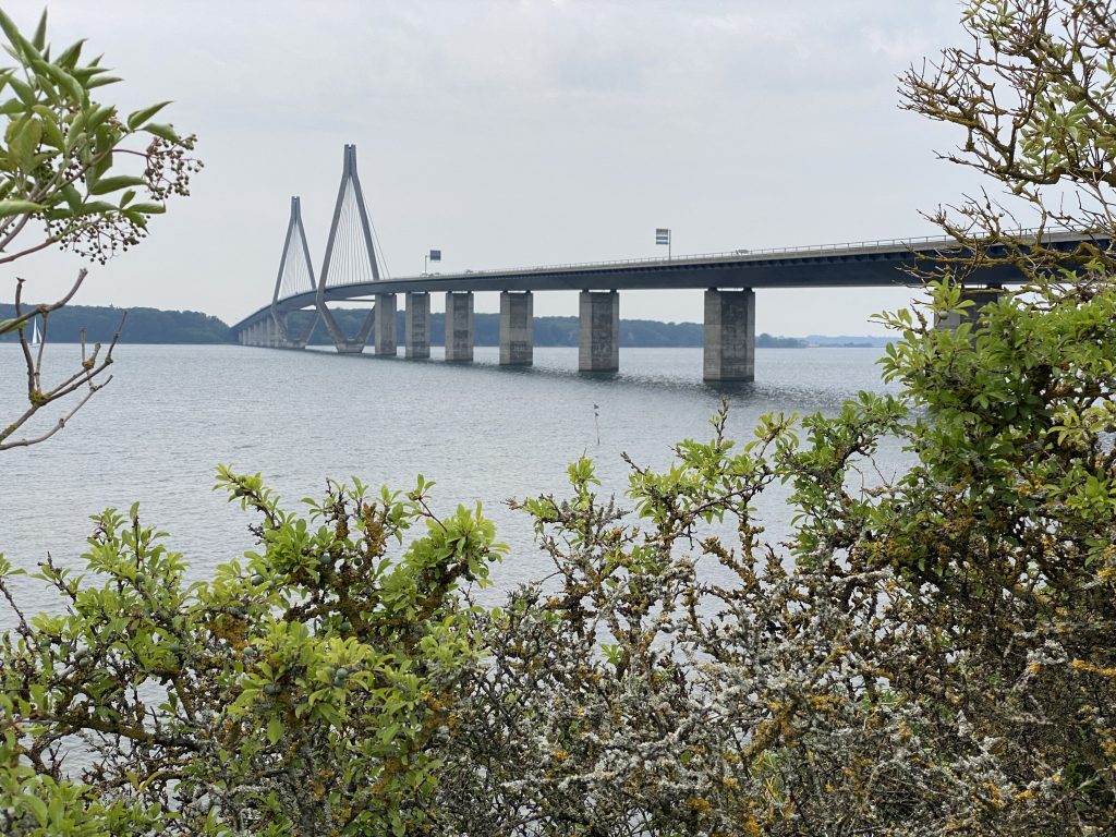 An der Farø Broerne – der Farø-Brücke ist das etwas anderes. Das imposante Bauwerk gibt den Blick frei auf einen gemütlichen Rastplatz am rechten Ufer des Sortsø Gab. Das sieht nach Wanderwegen am Wasser aus und man hat einen guten Blick auf die Brücke. Und tatsächlich – ich bin begeistert: Wunderschöne Anlage mit weiträumigen Parkplätzen inklusive Picknicktisch und auch ein WC samt Wasser und Abwasser für Womos ist angelegt. “Spitze und weiter so!”, kann ich da nur sagen.