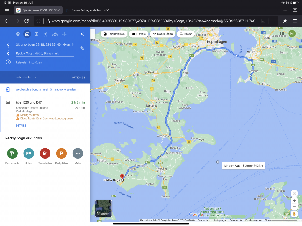 Nach einem kleinen Mahl und der Womopflege geht es weiter. Ich habe mir einen Stellplatz kurz hinter Malmö direkt am Meer herausgesucht, aber vorher geht es noch über den Öresund.