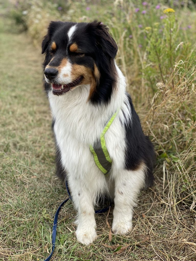 Ich packe das schläfrige Lunchen an die Leine und wir drehen eine wunderschöne Runde über Blumenwiesen, vorbei an schwalbendurchlöcherten Sandklippen, haben einen tollen Blick auf die eben überquerte Brücke und eine von uns beiden gönnt sich ein Bad mit anschließendem Algenpeeling.