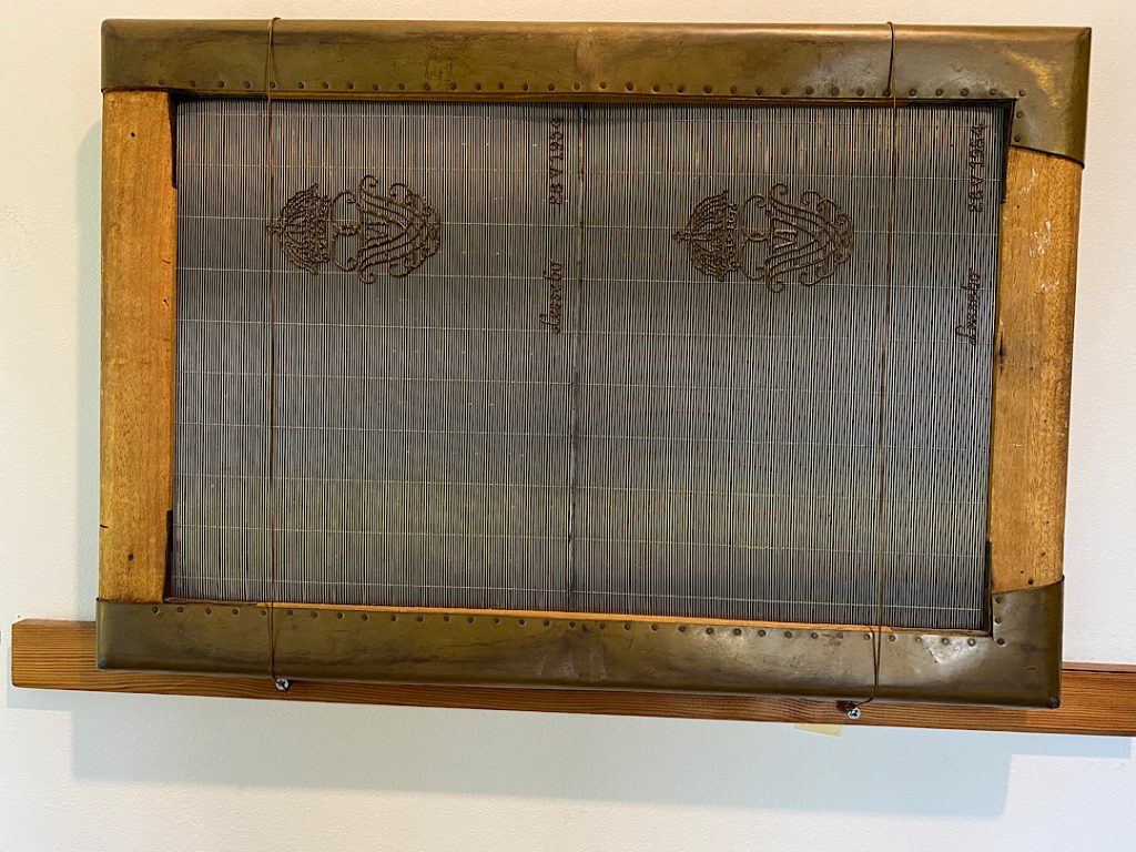 So entstehen Wasserzeichen, wenn man ein fein geflochtenes Bildchen in den Schöpfrahmen einarbeitet.