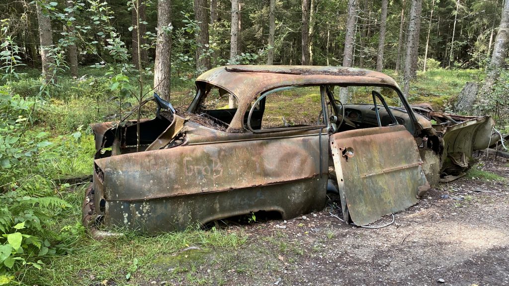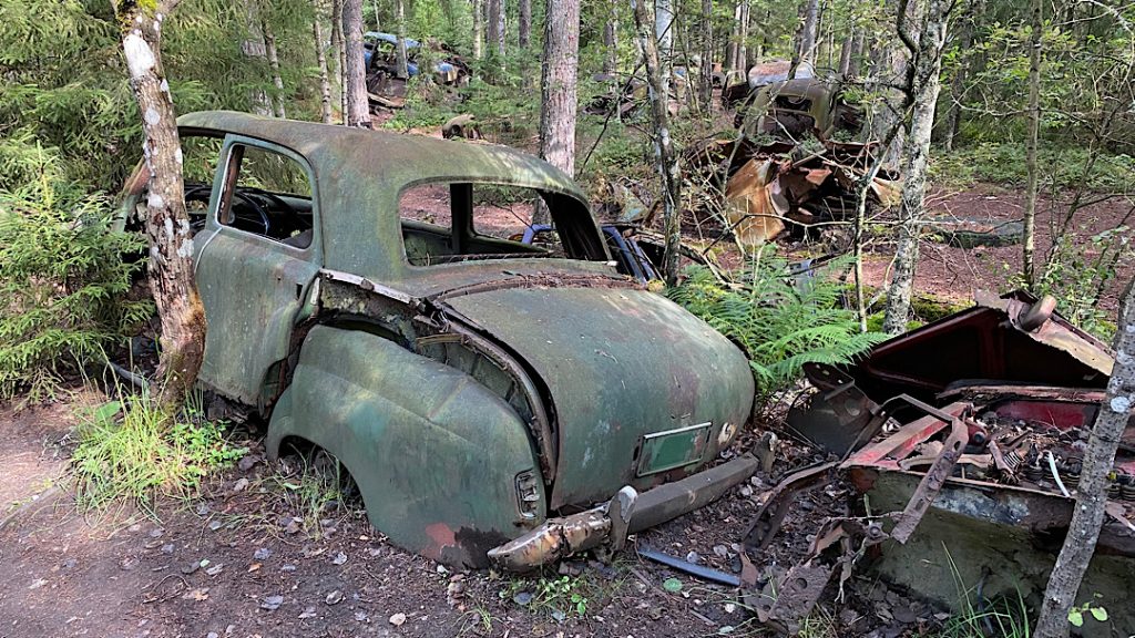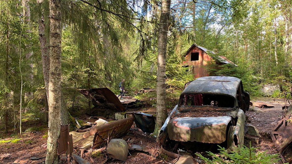 Ich fahre aber lieber noch nach Kyrkö Mosse zum dortigen Autofriedhof… Jep, genau, den schaue ich mir hier im wunderschönen Schweden an, denn es steckt eine wirklich skurrile Geschichte dahinter.