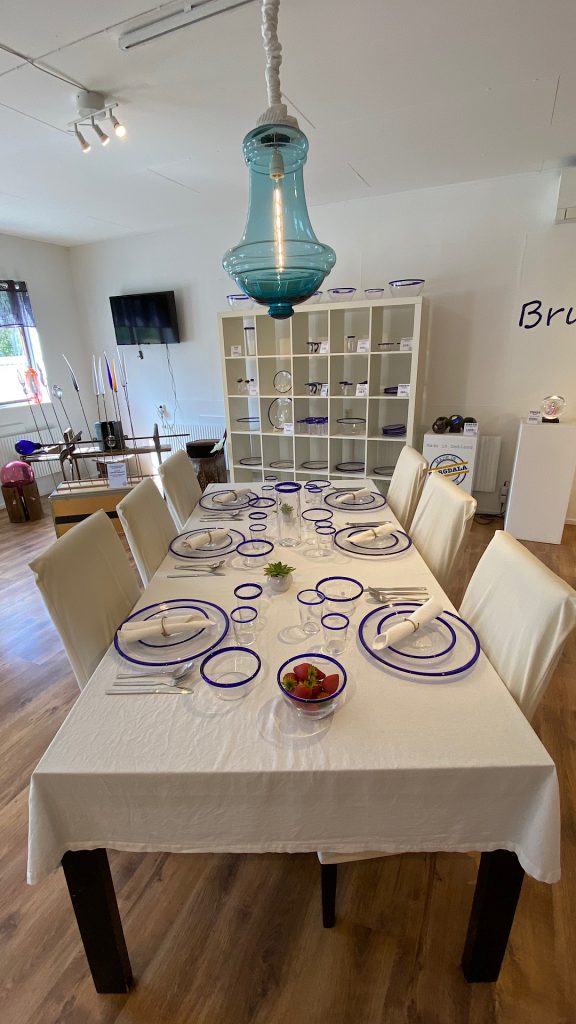 Im nächsten Eingang kann man Glaswaren mit dem typischen Bergala-Blau kaufen.