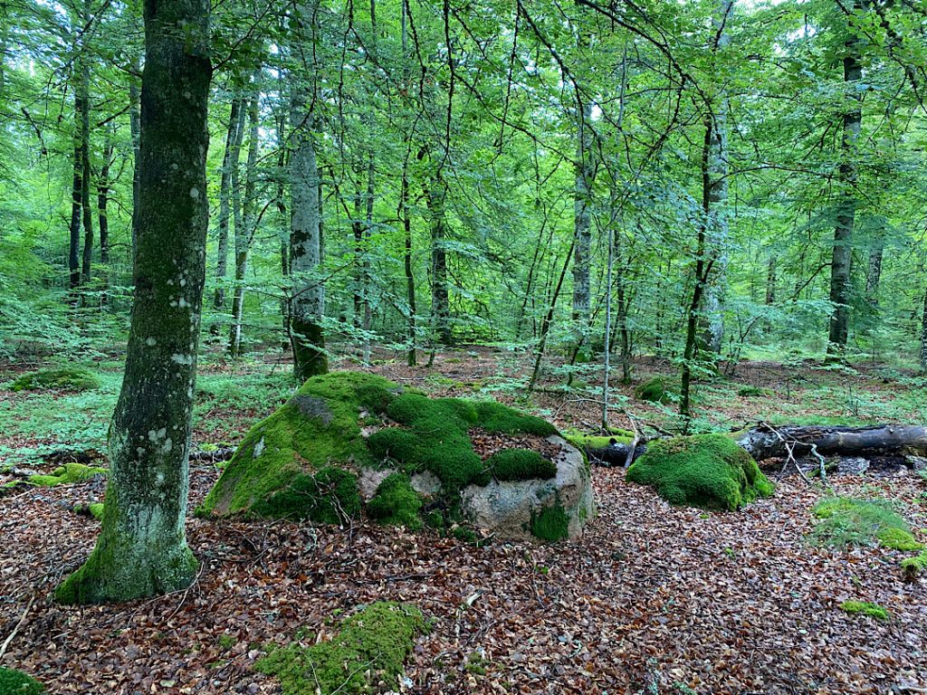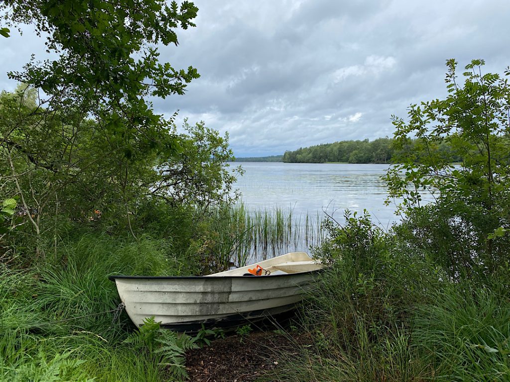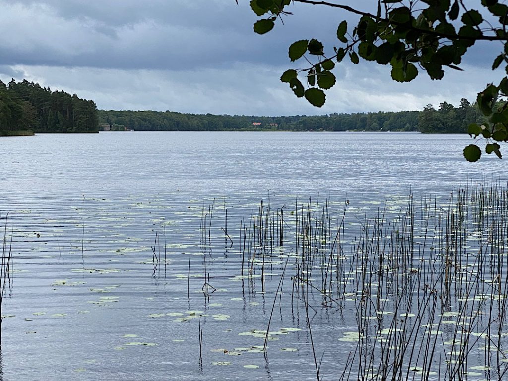 Auf einer Halbinsel gelegen, bietet es einen 7km Rundwanderweg, den ich heute gern gehen möchte. Der Einstieg ist schnell gefunden und so wandere ich vorbei an alten bemoosten Steinen, unter Eichen und Buchen, über riesige Blaubeerwiesen (leider sehen die schon sehr ausgekämmt aus), auf Holzstegen durch Sumpfwiesen und entlang des Ufers des Helgasjön Sees. Wunderbar.