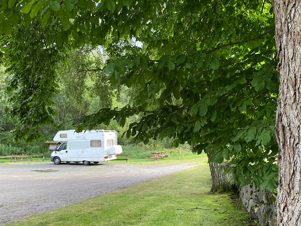 Und noch wunderbarer: man kann hier mit dem Womo verschiedene Parkplätze anfahren und nur von 00:00 – 05:00 ist da Parkverbot. Ich such mir den schönsten aus und mache dort um die Mittagszeit Rast. Nach der Wanderung tut ein Bad im rostroten aber glasklaren Wasser des Sees sehr gut und pünktlich zum Mittagsschlaf setzt der Regen ein.