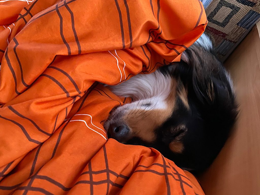 Lunchen schlafend unterm Deckchen und „Knöppe zu“!