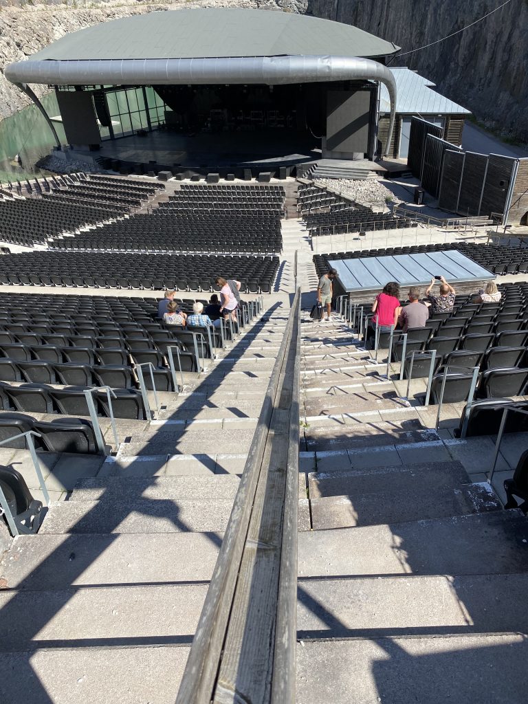 Der Blick hinunter auf die Bühne – beeindruckend. Gestern habe ich schon geschaut, wann das nächste Konzert ist, aber die Saison neigt sich auch hier dem Ende entgegen und außer einem Termin im September ist nichts mehr zu haben. Das wäre natürlich das Sahnehäubchen gewesen: hier ein Konzert sehen.