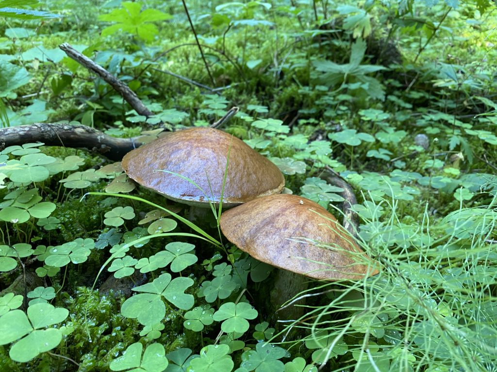 Da stehen zwölf Rotkappen verteilt über eine kleine Wiese! Krass. Ich flitze sofort zurück zum Womo und hole einen Korb. Leider sind einige schon zu alt, um noch lecker zu sein, aber als dann noch ein Birkenpilz und ein paar andere dazukommen, dürfte es für eine Pilzmahlzeit reichen. Dann hat sich der Abzweig doch gelohnt.