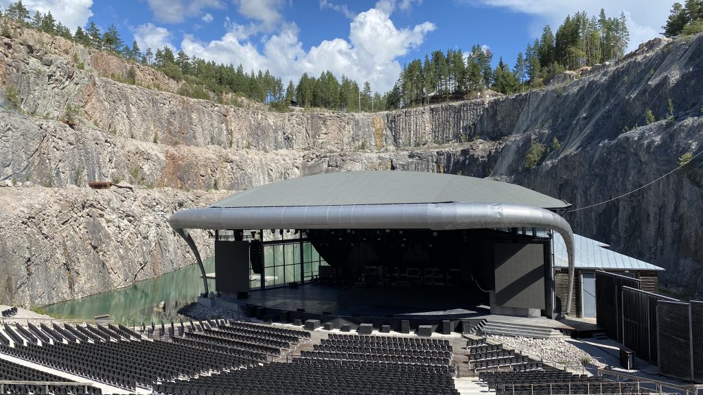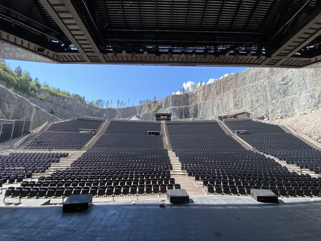 Trotzdem ist es ein eindrucksvolles Erlebnis, diese besondere Spielstätte so intensiv betrachten zu können. Rings an den Abruchkanten sind riesige Netze gespannt, die das lockere Gestein zurückhalten. Ein tiefblau leuchtender See schließt sich an die Bühne an und ringsherum gibt es Bars, Restaurants, VIP-Longes und andere Gebäude.