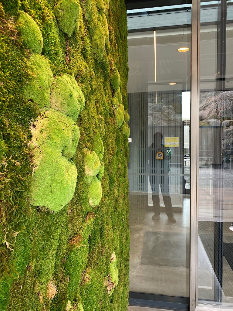 Luna pennt im Auto und ich stütze mich in die Welt der Friedensreich. Im Eingangsbereich ist ein ganze Wand mit Moos bepflanzt, nett anzuschauen, aber ich habe keine Ahnung wie das hält.