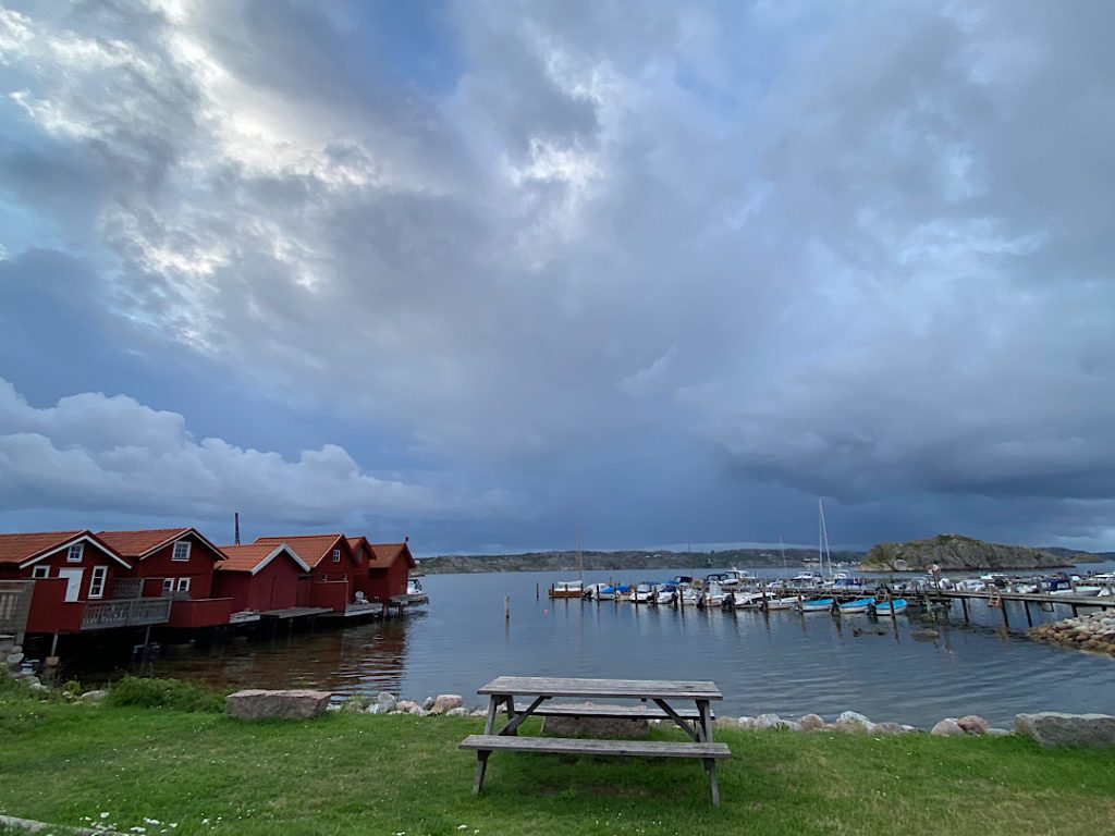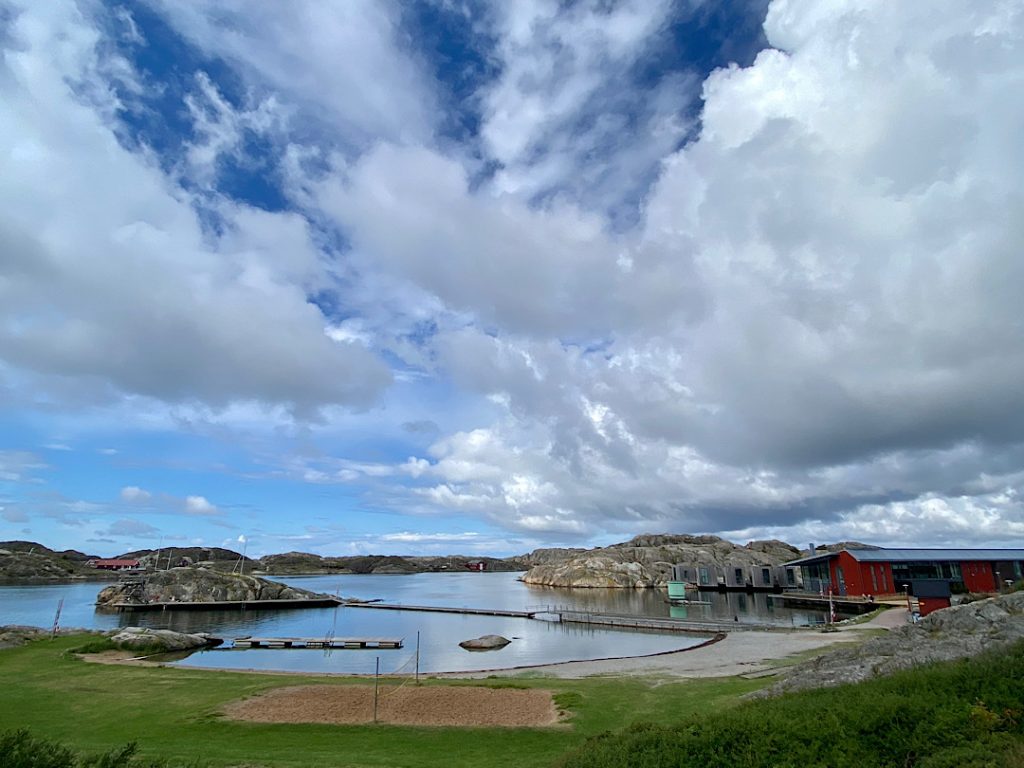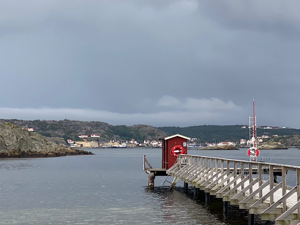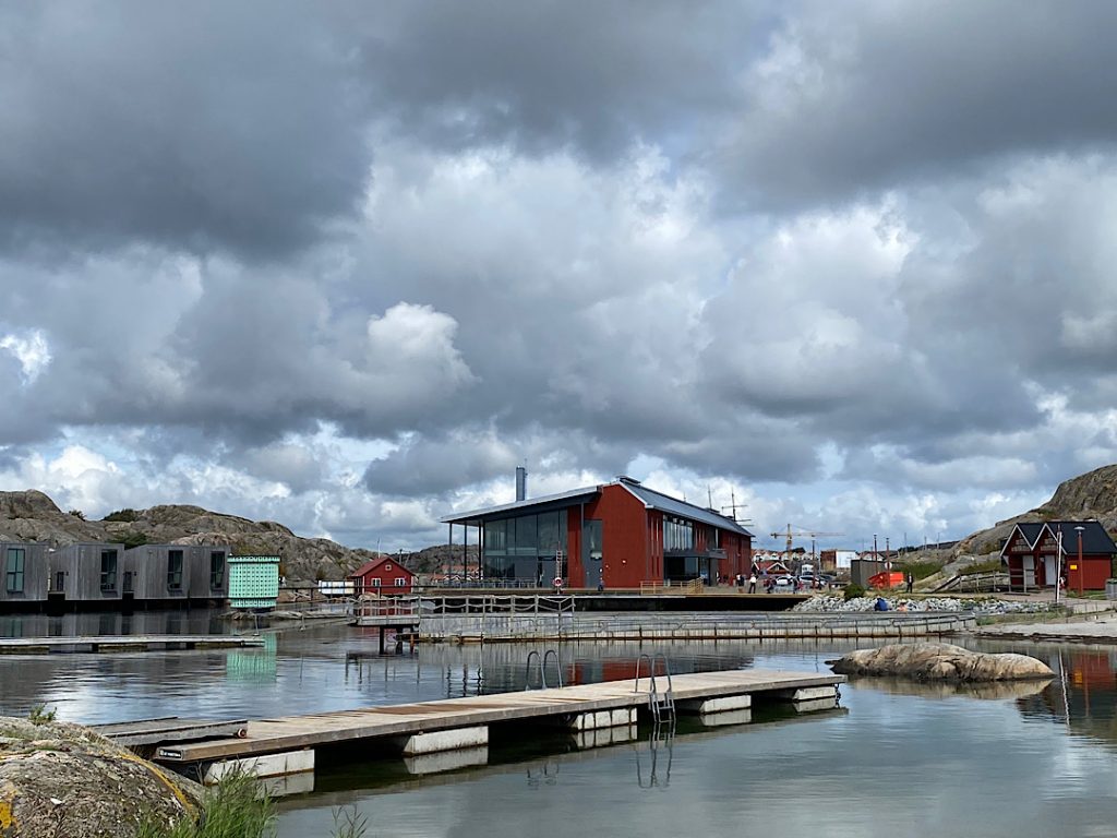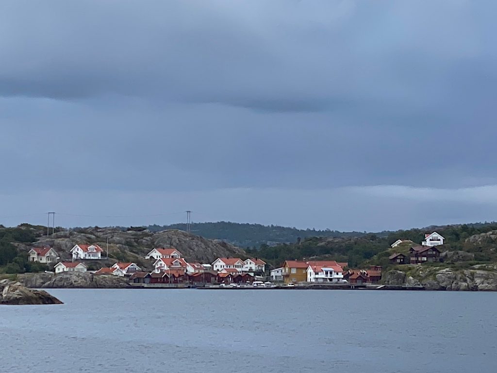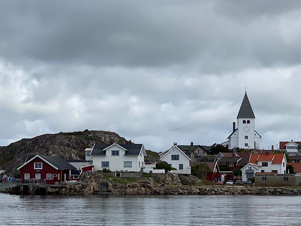 Vom Museum kann man einen Blick hinüber in die eigentliche Stadt Skärhamn werfen und besonders schön finde ich die schmunzelnde Kirche.