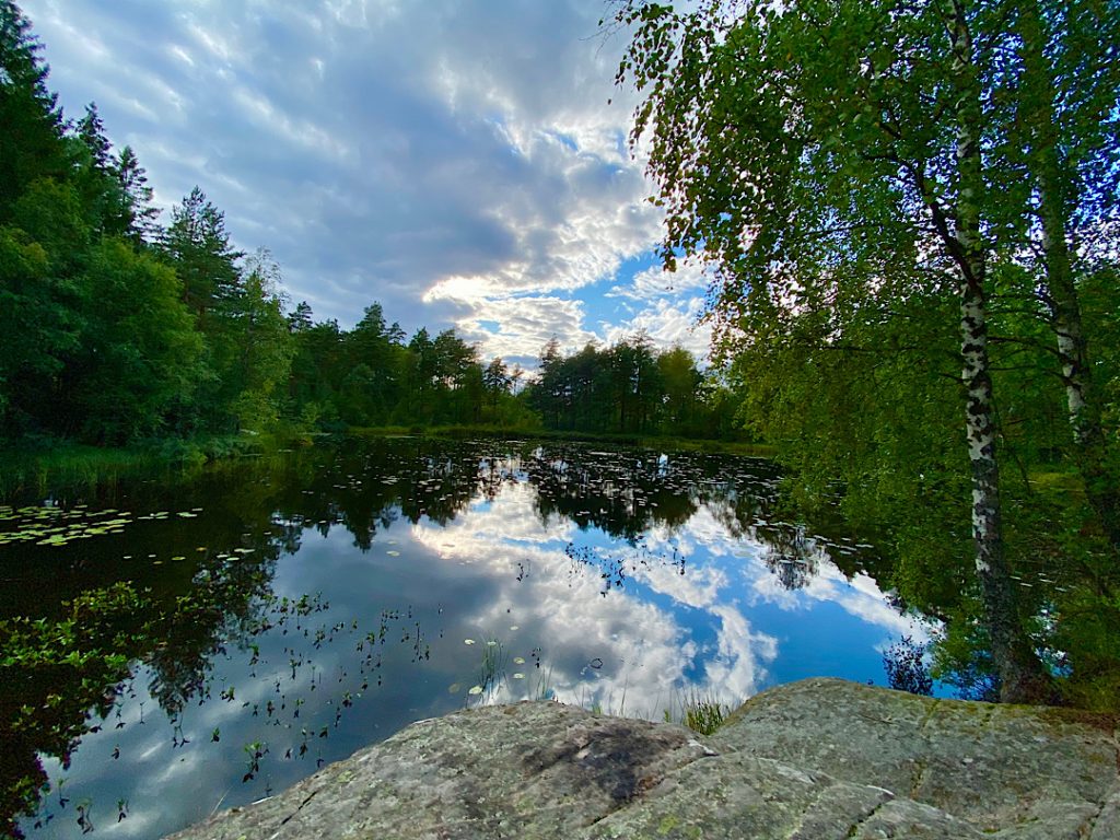 Auf halber Strecke Kungälv mit der sicher besuchenswerten Burgruine Bohus Fästning, die dem Gebiet hier (Bohulslän) den Namen gab. Aber heute schon geschlossen und ich fahre gleich weiter. Im Umfeld von Göteborg wird der Verkehr dichter, ich sehe zum ersten Mal in Schweden Industriegebiete und freue mich, als es bei Starrkärr wieder ländlicher wird. Am Hultasjön finden wir einen „Badeplats“ als schöne Übernachtungsstelle mit Blick auf den Seerosenteich.