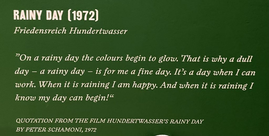 Im Aquarellmuseum ist immer eine andere Ausstellung und noch bis zum 12.September die Hundertwasser Schau – na prima, das wird bunt.