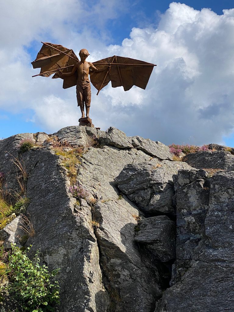 Letzteres ist wirklich sehr schön anzuschauen. da steht ein kleiner Junge mit selbstgebauten Flügeln auf dem Felsen. Der Wind lässt sein Haar herumwirbeln und barfuß, die Fersen schon angehoben, ist er ganz kurz vor dem Sprung. Jedes Detail zeigt seine Anspannung, er scheint die Luft anzuhalten und alles an ihm ist so einfach, selbst gemacht und naiv. Mir gefällt die Figur sehr gut. Artist of Residenz ist aber gerade Sean Scully aus Irland. Und jetzt bräuchte ich Hilfe. Was soll ich denn damit anfangen. Ich möchte es ja gern verstehen, den künstlerischen Wert ermessen, aber, meine lieben Kunstlehrerfreundinnen – was soll denn das? Weder handwerklich noch inhaltlich erkenne ich hier einen Mehrwert.