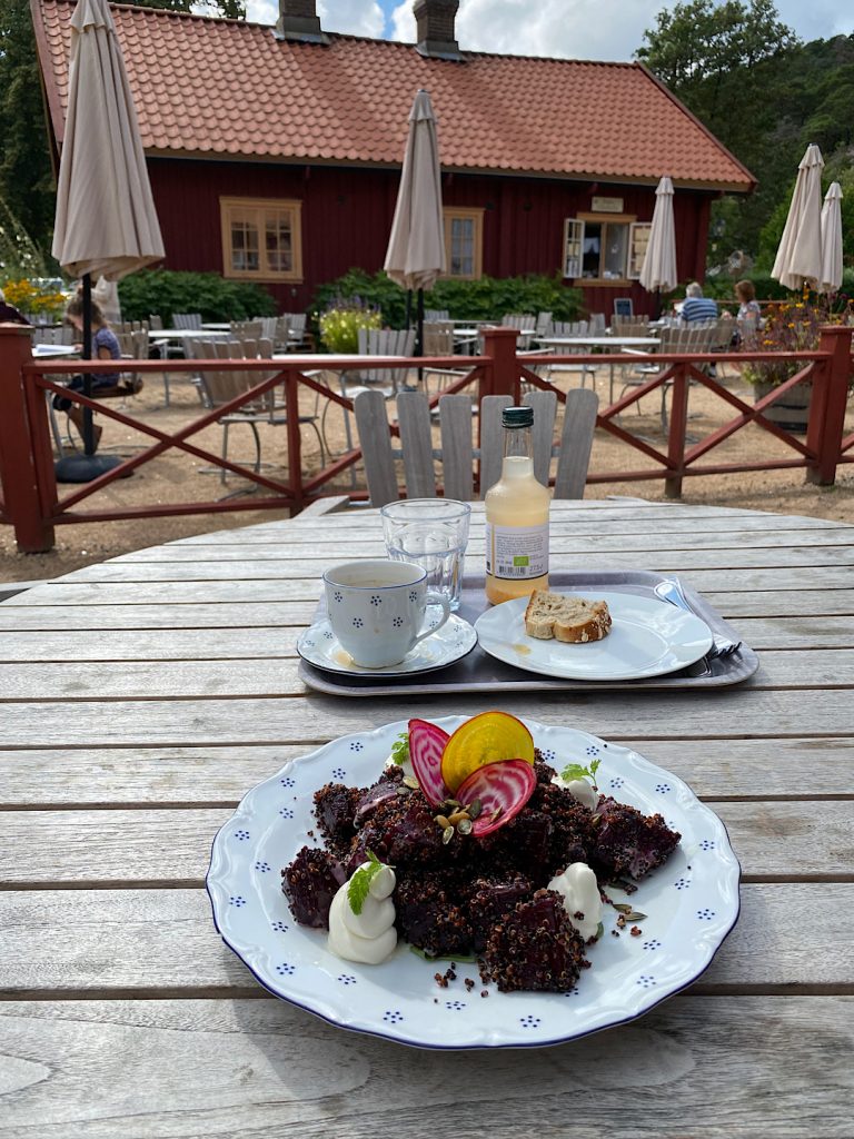 So gönne ich mir heute das erste mal ein Restaurant und bestelle das Tagesgericht von der Karte. So richtig weiß ich nicht, was mich erwartet, denn da stand es nur n Schwedisch, aber toll sieht es aus und geschmeckt hats auch. Gebackene Rote Beete mit Quinoa auf Blattspinat mit Ziegenkäse.