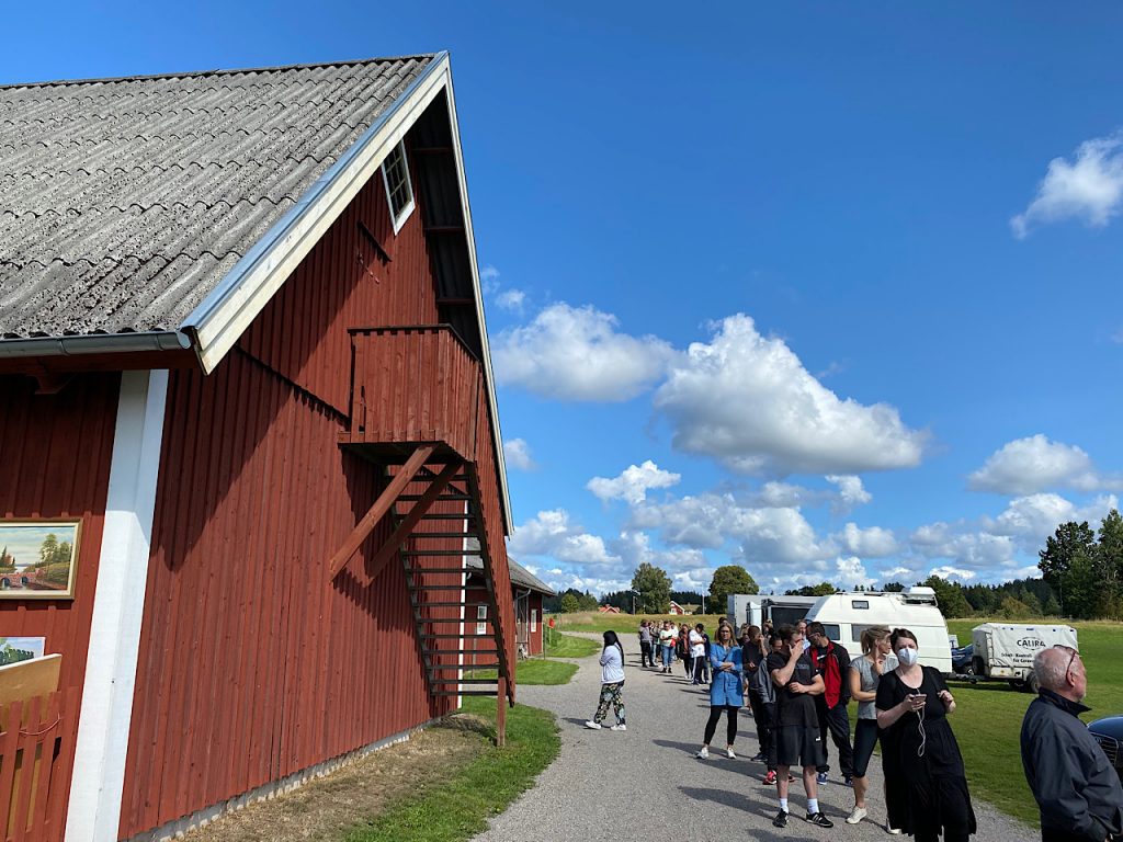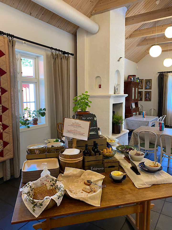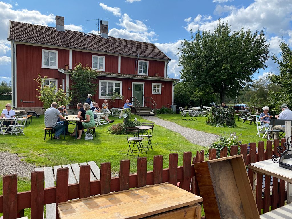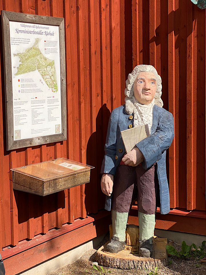 Nun habe ich Hunger und den würde ich gern bei Herrn Linné im Gartenhaus stillen. Auf dem Hinweg habe ich es verpasst, das soll mir nicht wieder passieren. In Råshult, wo Carl von Linné 1707 geboren wurde, gibt es heute ein wunderschönes kleines Museum, mit großen Garten, Feldern und einem hübschen Café. Als ich ankomme werde ich vom Naturforscher höchstpersönlich begrüßt und ich habe Glück, ein kleines Buffett ist aufgebaut, von dem man sich für ein paar SKR bedienen kann.