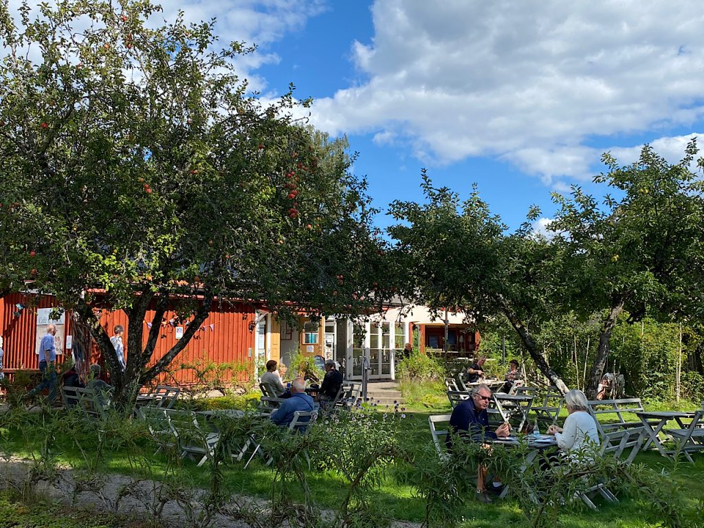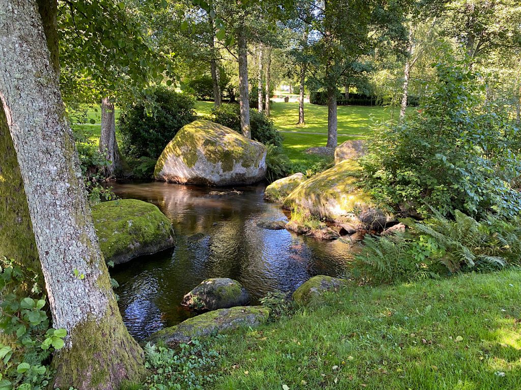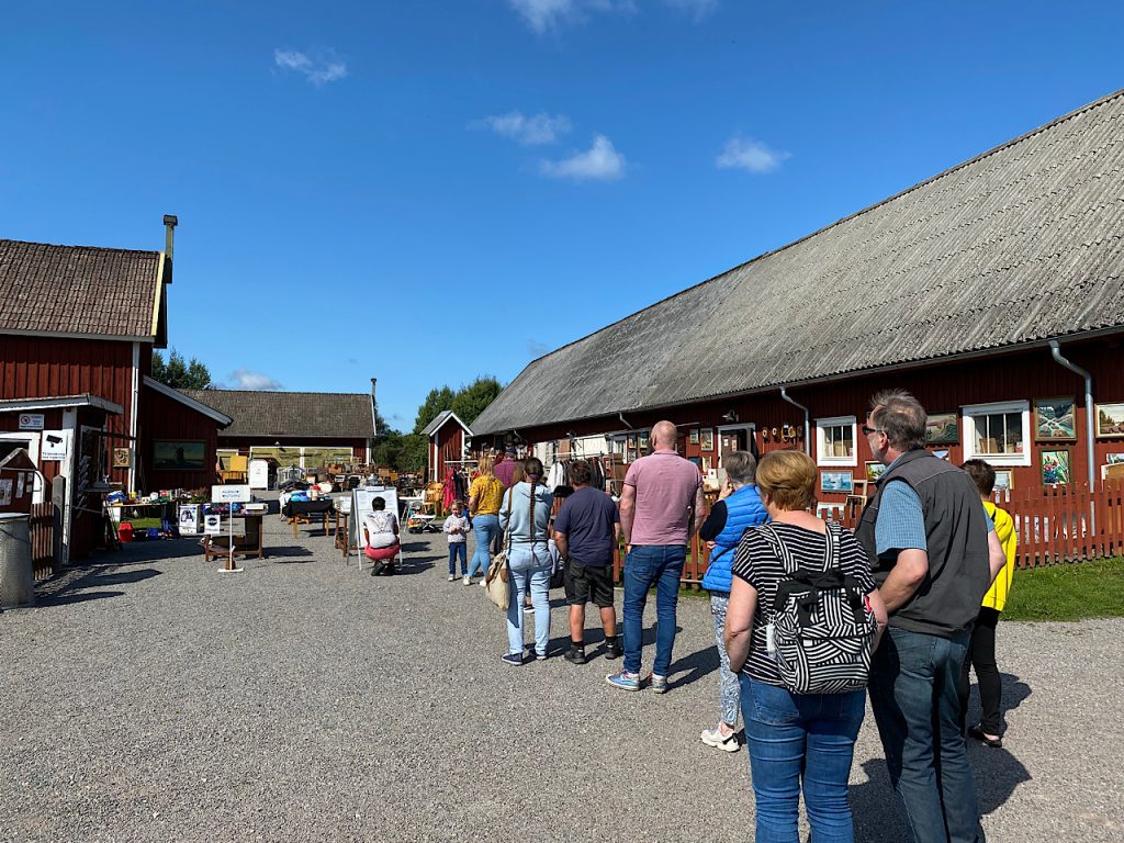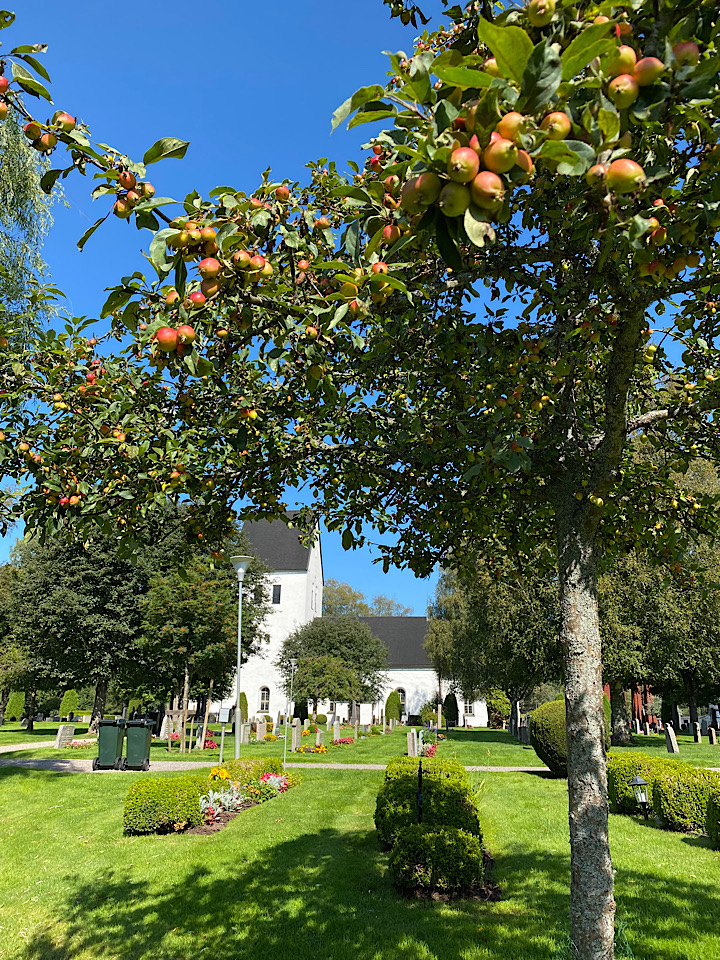 Was für ein Tag! Wir fahren früh los, werfen Andre und Angi die 100 SKR noch in den Briefkasten des Vertrauens und nehmen zuerst einen Parkplatz nahe Lammhult ins Visier, dort kann man zumindest das Chemieklo entleeren – Grauwasser, Trinkwasser leider Fehlanzeige. Dann gehts weiter nach Moheda zum Östregard Antik- und Trödelmarkt. Dort angekommen, merke ich aber, dass ich mich um 2 Stunden verschätzt habe. Nicht um 10 sondern 12 Uhr macht der auf, aber kein Problem, ich habe eh noch nicht gefrühstückt und der Blogbeitrag ging gestern wegen mangelnden Internets auch nicht online. Deshalb ist die Zeit gut gefüllt. Außerdem bummel ich mit Luna noch ein bisschen in den Grünanlagen von Moheda, die ganz wunderschön angelegt sind, bis ich merke… dass es ein Friedhof ist. Einer, auf dem Apfelbäume wachsen, Bäche plätschern und Hunde herumlaufen dürfen. Super, das gefällt mir.