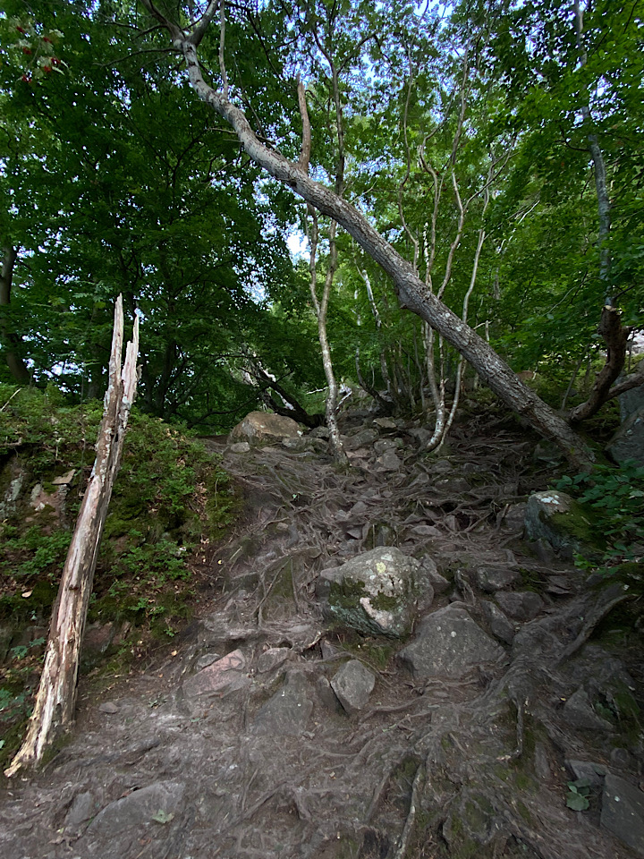 Steht man dann am Strand und betrachtet das Ungetüm, dann freut man sich schon, dass es noch erhalten ist. Schlussendlich haben es nämlich Joseph Boys und nach dessen Tod die Christos gekauft, um es vor dem Abriss durch die Behörden zu schützen. In der Nähe gibt es auch noch eine Steinskulptur, aber da bin ich schon wieder damit beschäftigt, meinen Körper die steile Klippe hinaufzuwuchten und dabei Lunchen im Blick zu haben, die immer mal auf die Kante zusteuert… ganz schön anstrengend.