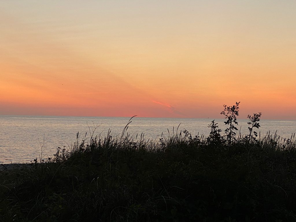 Was für ein Tag! Die Sonne ist glutrot im Meer verschwunden, das Wasser liegt vor mir wie ein frisch bezogenes Bett, kein Lüftchen weht und ich schlecke Obstsalat mit Vanilleyoghurt. Einfach unschlagbar!