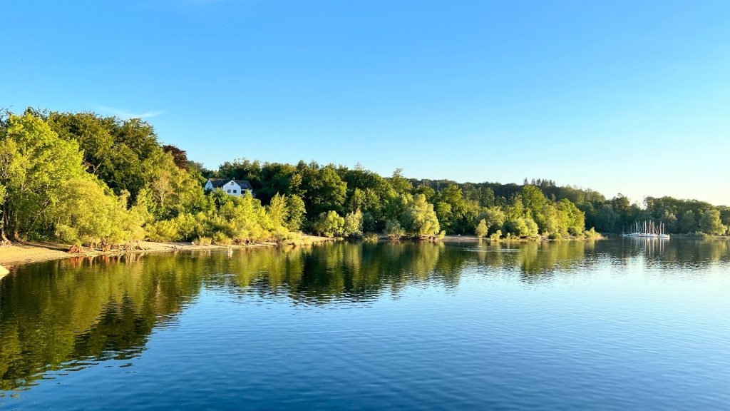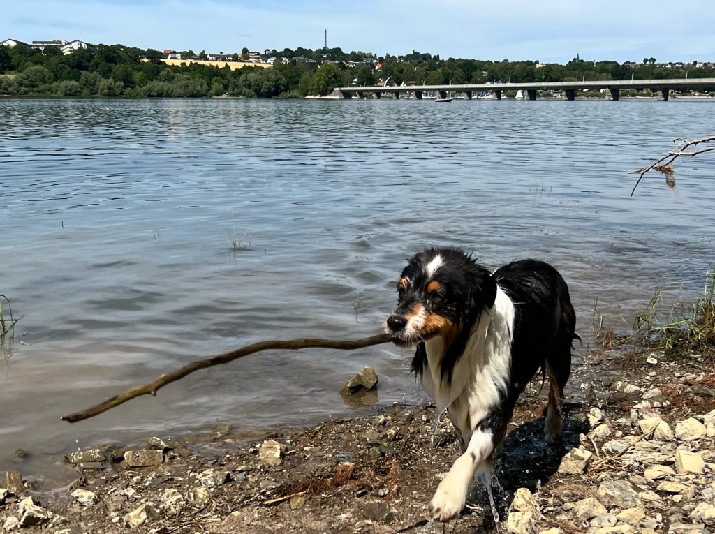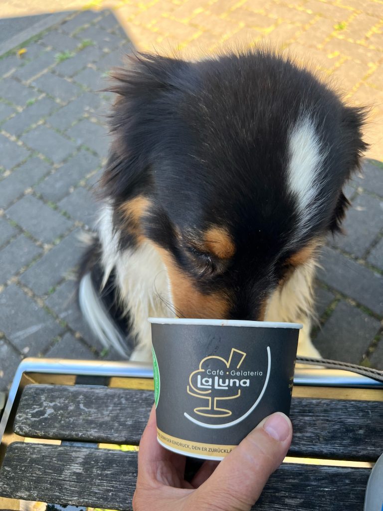Heute kann man am beschaulichen Wasser baden, Standup paddeln, Schiffahrten planen und leckeres Eis essen. Wir ruhen uns nach einer willkommenen Erfrischung im kühlen Nass ein wenig am Strand aus. Luna schläft, ich lese mal ein etwas anders geartetes Buch und beobachte die Wasserratten.