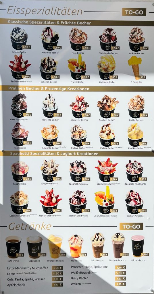 Unser Stellplatz ist ein Wanderparkplatz am nahegelegenen Aussichtsturm. Für eine Wanderung da hin ist es selbst 17:00 Uhr noch zu warm. Deshalb besuchen wir lieber die Eisdiele “La Luna“ mit ihrem reichhaltigen Angebot und verbringen den restlichen Nachmittag im Schatten.