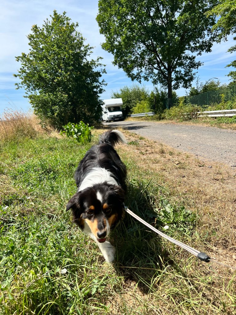 Seit Tagen schon hat es nicht geregnet. In Südeuropa brennt es. Sogar Großbritannien bereitet sich auf eine besondere Hitzewelle vor. „Alarmstufe Rot!“ panikt das Internet. Marietheres schreibt aus Medroux – „42 Grad, Kleinafrika“. Auch in meinem Wohnmobil ist es warm aber ich fahre gemütlich bei 90 km/h und offenem Fenster gen Nord-Westen. Da hat Luna zum Glück die Sonne im Rücken und nicht direkt auf dem Beifahrersitz. Als würde sie täglich nichts anderes machen, hat sie wieder ihren Stammplatz eingenommen und beobachtet kritisch den Verkehr. Ab und zu zucken die Ohren beim Rumpeln der Brückenverbinder oder wenn einer der Reifen einen Rüttelstreifen überrollt, aber ansonsten mimt sie die Expertin: Es geht wieder los. Schottland wir kommen.