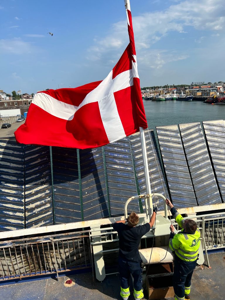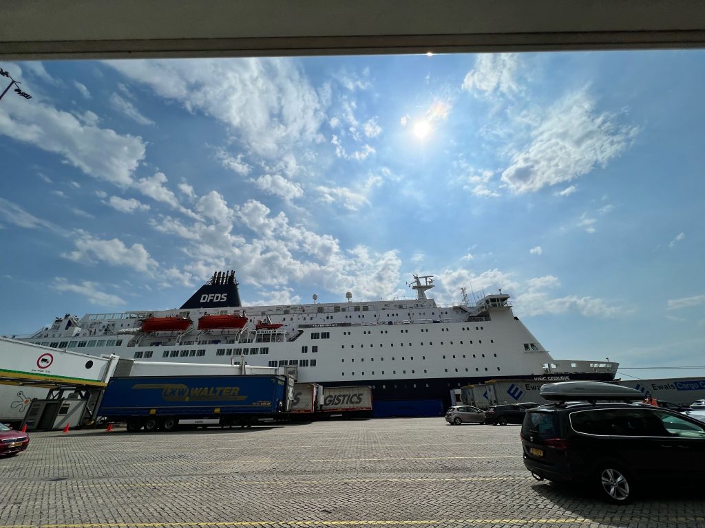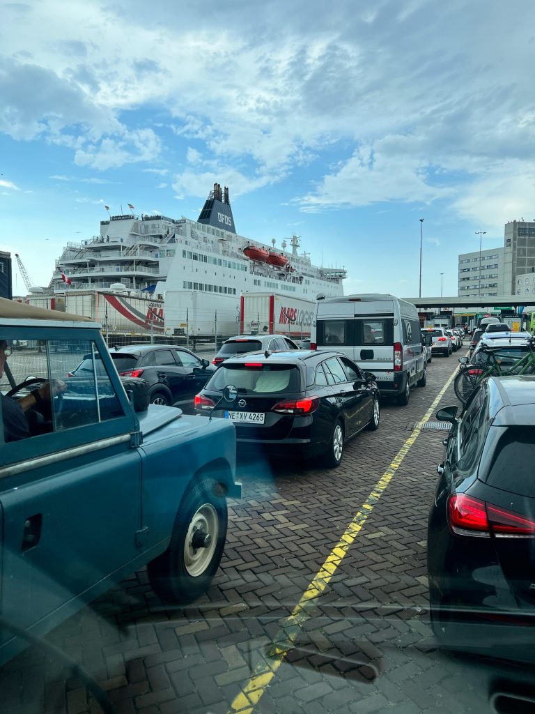 Pünktlich um 15:30 stellen wir uns in die Boarding-Reihe und rollen gegen 17:00 aufs Schiff.