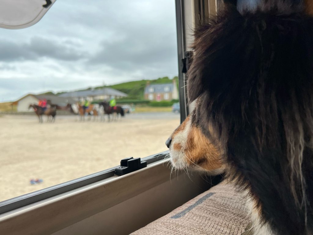 Das Internet ist annehmbar und so schreibe ich gemütlich meinen Blog, genieße Kaffee und Kuchen und bekomme noch ein kleines Extra: 12 Pferde inclusive Reiterinnen besuchen den Strand. Erst wir gebadet, dann eine Galloppeinheit hingelegt. Herrlich.