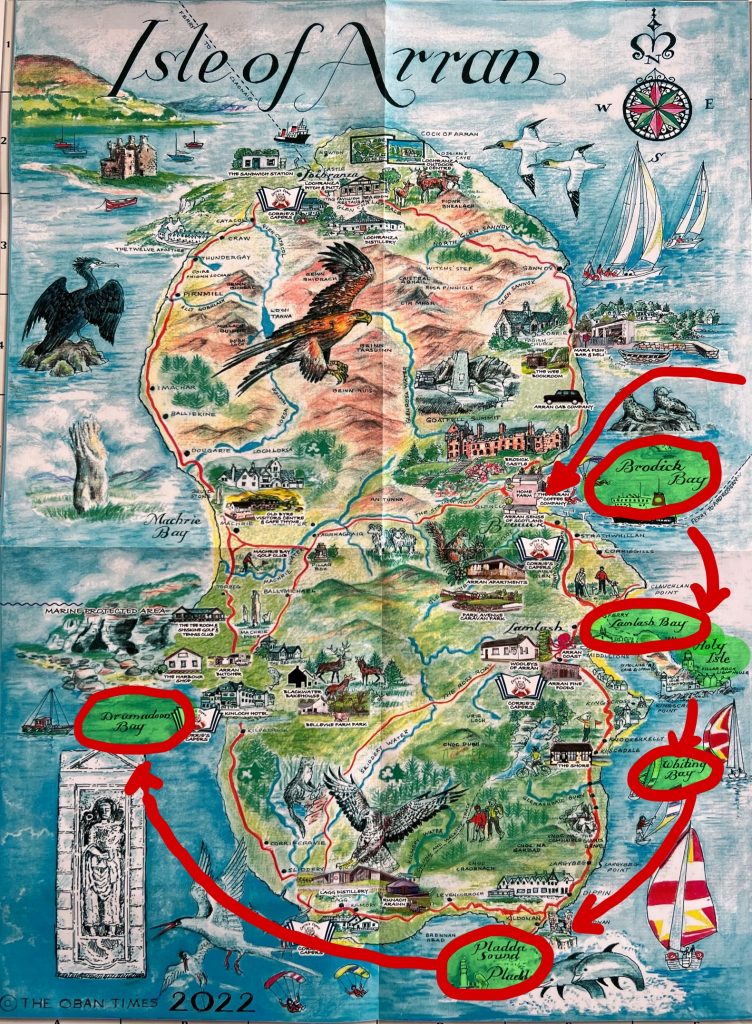 Brodick – Lamlash Bay – Whiting Bay – Pladda Sound – Drumadoon Bay.