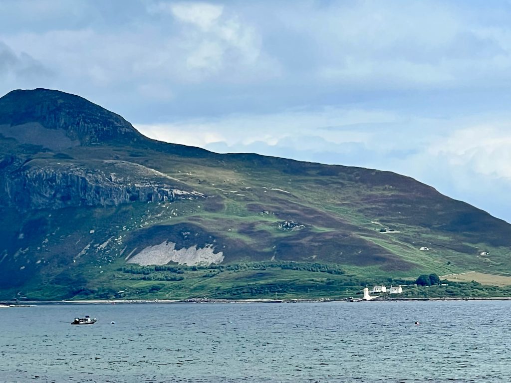 Unten in Whiting Bay hat man noch einmal eine schöne Sicht auf die Holy Isle. Täglich kann man mit Fähren hinüberschippern und im 1992 gegründeten “Centre for World Peace and Health” meditieren oder Yogakurse belegen. 30 Leute wohnen dauerhaft im Zentrum und auch Übernachtungen sind möglich. Gleich neben meinem Wohnmobil, ca. 10m von der Straße entfernt mit Blick zum Meer sitzen zwei junge Schweizer im Yogasitz und meditieren die Hände zum Gyan Mudra gefaltet. Hm, entweder ist das schon das erweiterte Level, hier so neben dem Verkehr, aber keine hundert Meter weiter, an dem kleinen Bach, den ich gerade hochgewandert  bin, hätte man dazu wahrscheinlich mehr Muse… aber was tut man nicht alles für den Weltfrieden…