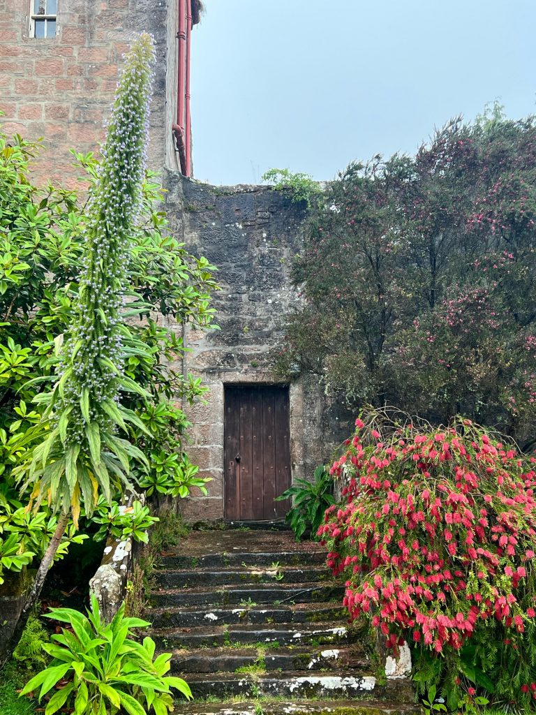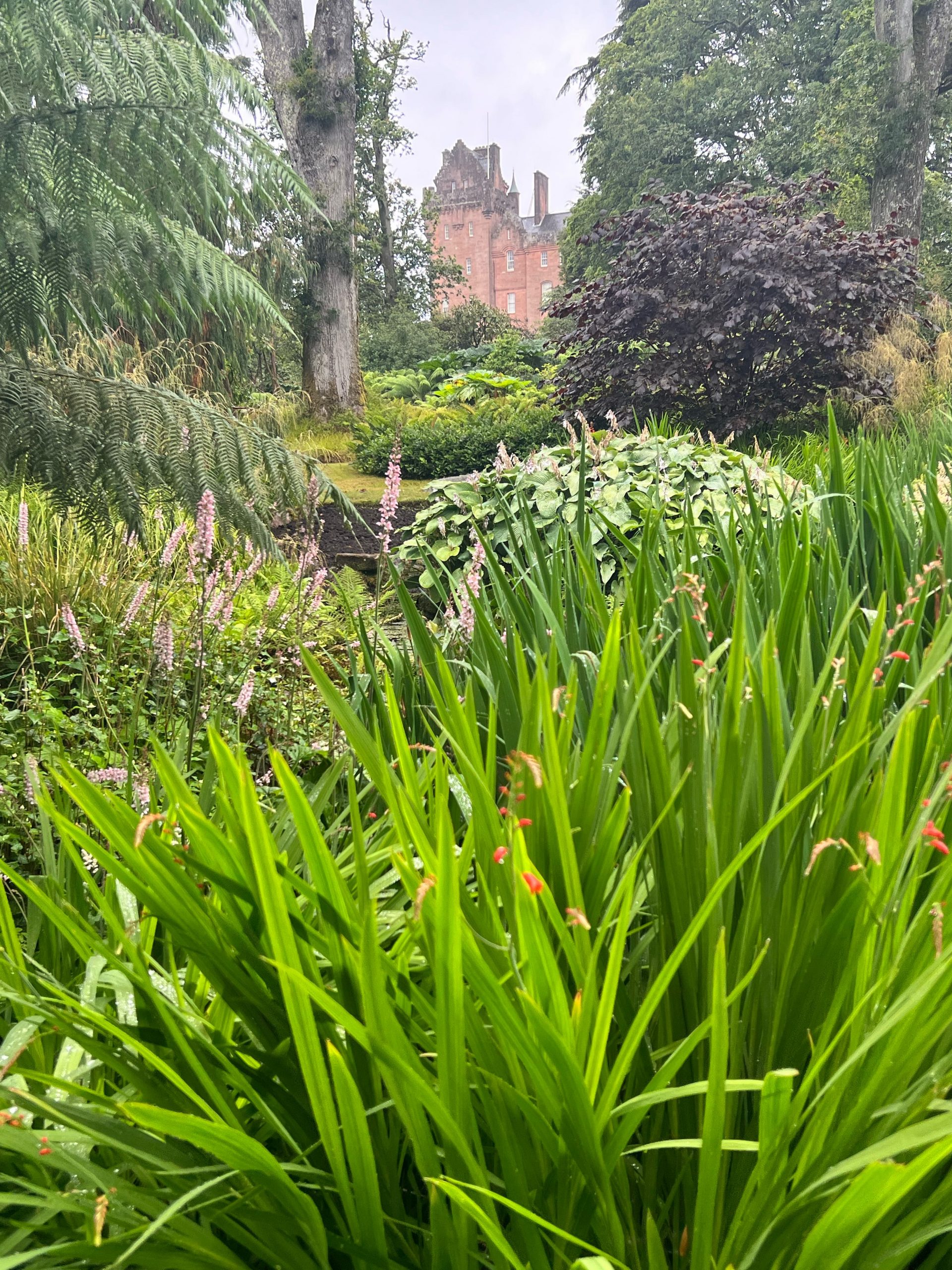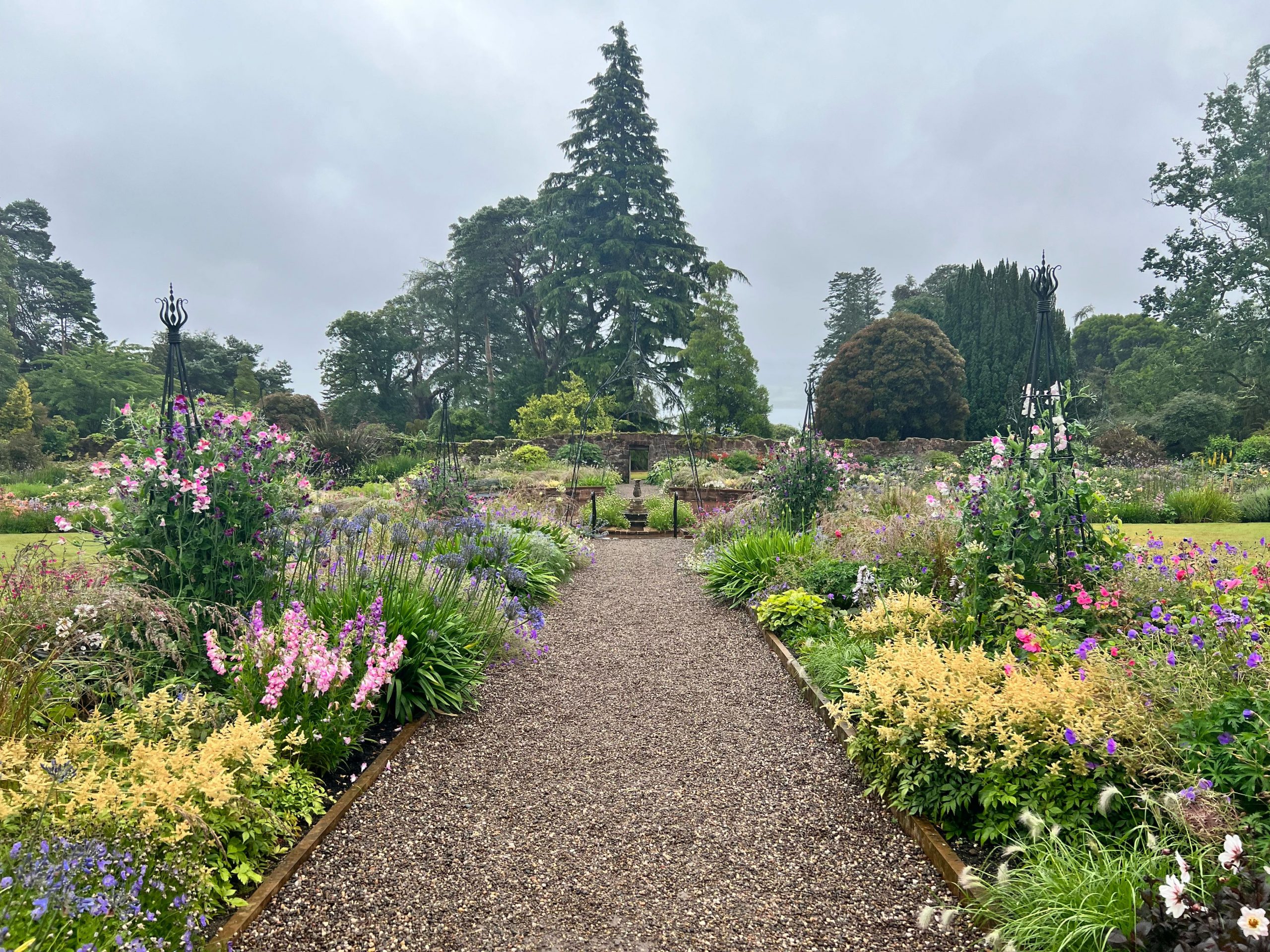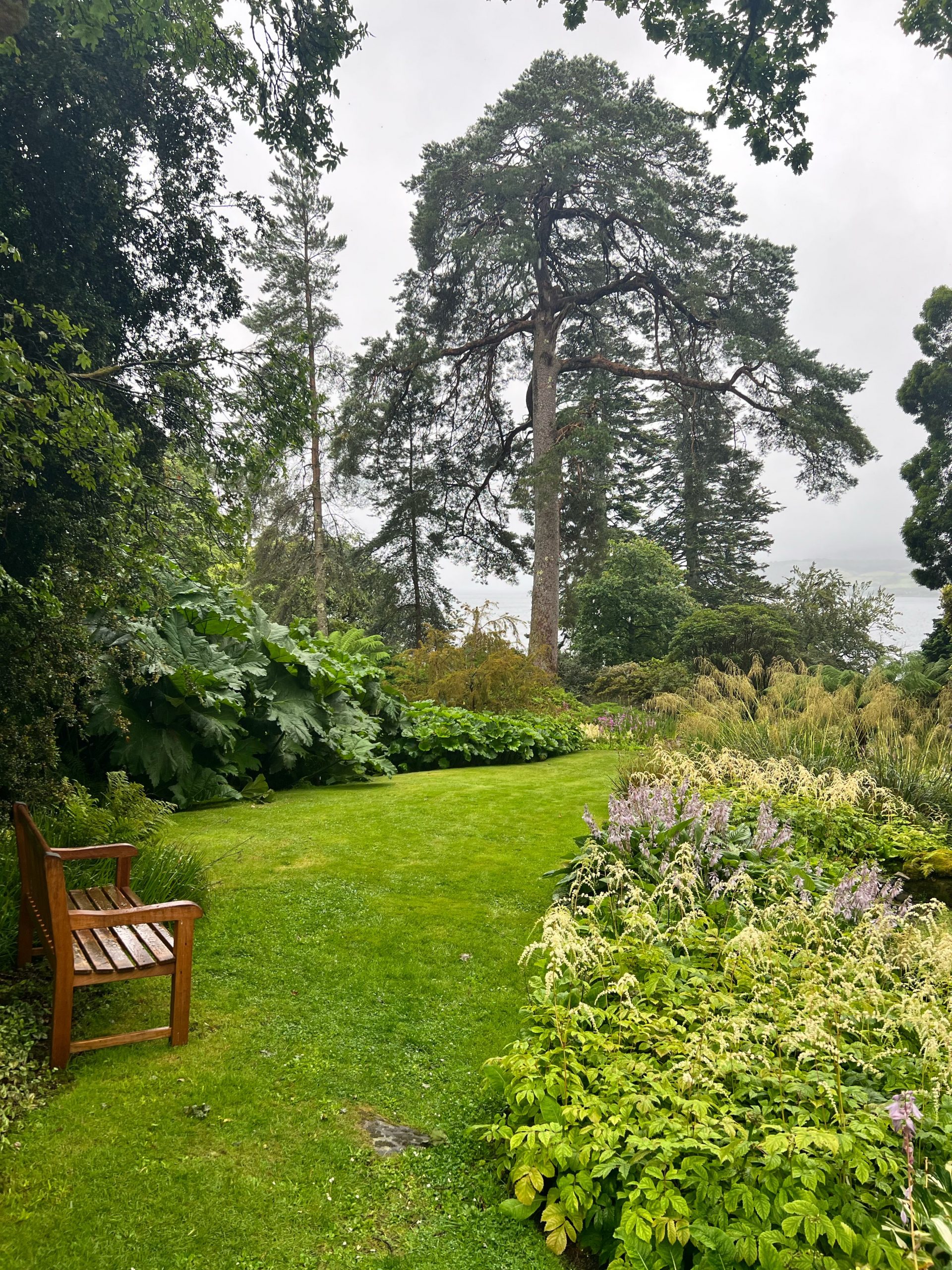 Der Regen wird stärker. Als ich die Insel überquere, fahre ich auf dem höchsten Punkt einmal durch die Wolken, eh ich in Brodrick beim Castle für 14 Pfund Einlass begehre. Durch ein wunderschönes schmiedeeisernes Tor betrete ich den Wallet-Garden. Hunde sind im Schloss nicht erlaubt und Luna schlummert friedlich und müde im Womo.