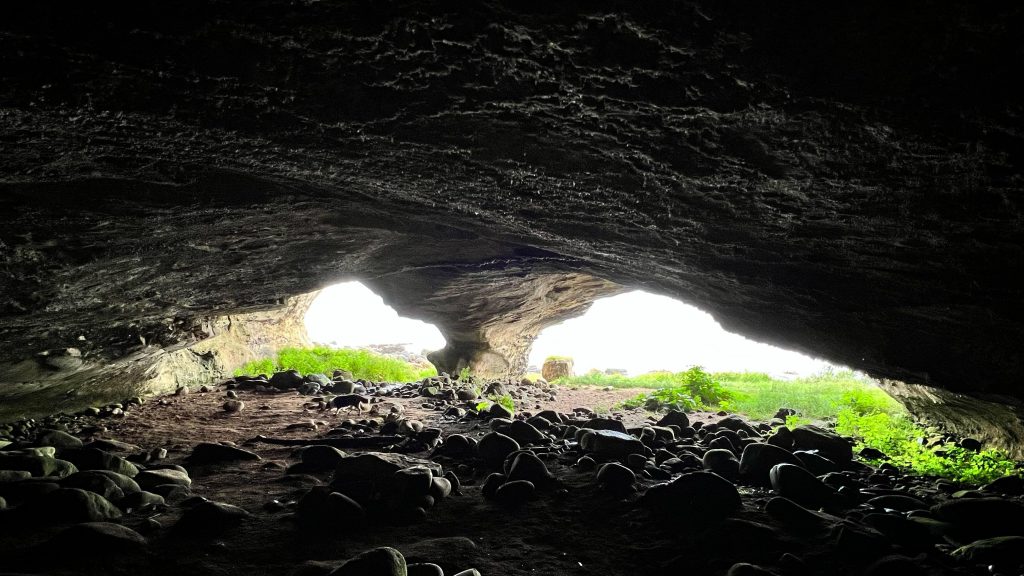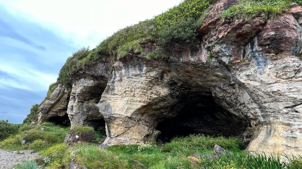 Über den angrenzenden Golfplatz verläuft der Weg in Richtung Kings Cave. Robert the Bruce, der schottische König des 13.Jhd. soll sich dort versteckt haben, als er zum 6. Mal eine Schlacht gegen die Engländer verloren hatte. Den Ort des Verstecks beanspruchen aber mindestens noch drei andere schottische Gegenden für sich. Halten wir es einfach mal für wahr und laufen los.