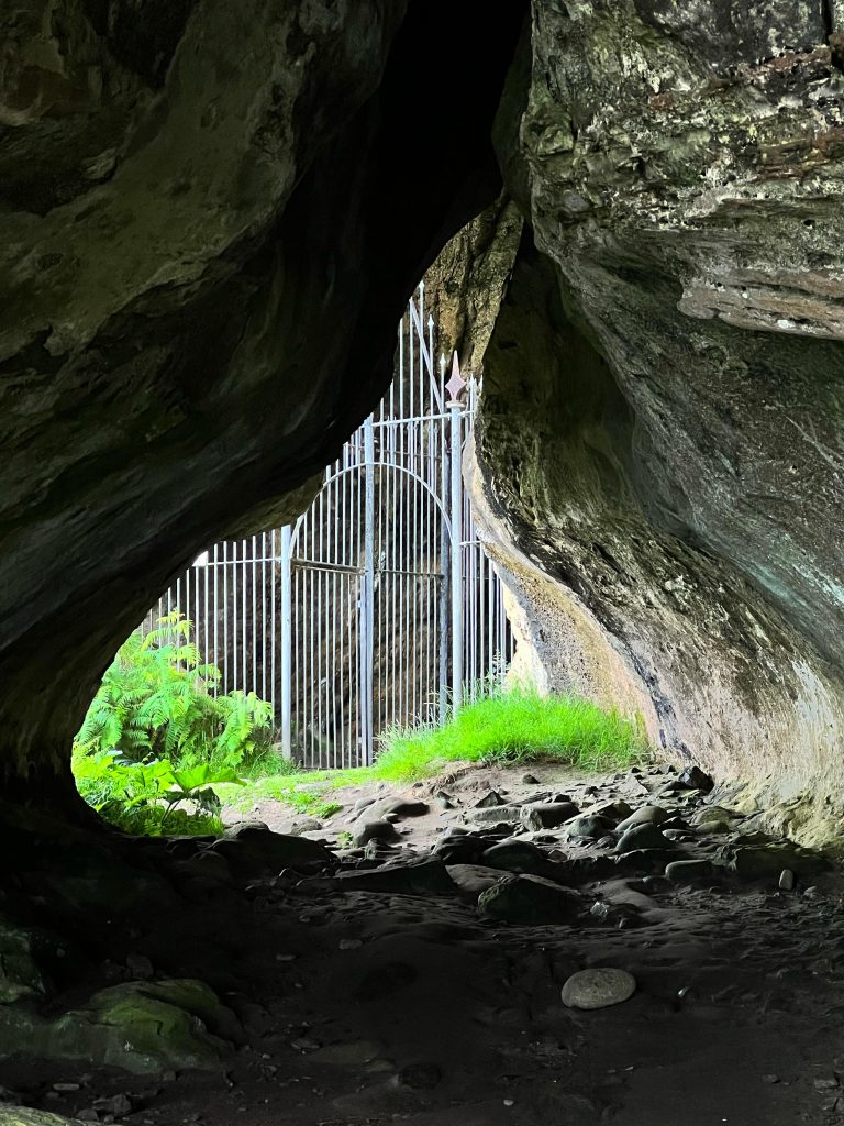 Schon von fern sind die Höhlen zu erkennen und ich staune nicht schlecht, wie groß sie sind. Da hat sich bestimmt der König nicht allein versteckt, sein halbes Heer passt hier auch noch rein. Die größte ist mit einem fürstlichen Gitter abgesperrt, an das jemand eine selbst gebastelte Spinne gehängt hat. Es geht nämlich die Mär, das der gute Robert the Bruce ziemlich deprimiert gewesen sein soll, als er nach sechs verlorenen Schlachten gegen die Rotröcke hier die Schmach erdulden musste und sich versteckte. Als er nun in seiner gemütlichen Höhle so nichtsnutzig rumlag, beobachtete er eine Spinne, wie sie erfolglos versuchte ein Netz zu bauen. Immer wieder ging es schief und erst beim siebenten Mal hing das Kunstwerk in den Felsritzen. Da sprang der König auf und sagte zu seinen Mannen: „If at first you don`t succeed, try, try and try again!“ Die nächste Schlacht gegen den König von England war erfolgreich… Moral: Spinnen verändern Weltgeschichte.