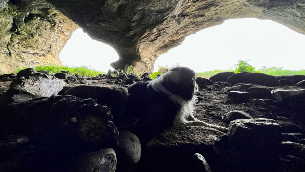 Luna nimmt schon mal Platz in der Königshöhle. Ganz schick hier. Mal kurz durchwischen, bissl Farbe an die Wände und ne Leckerli-Bar rein, dann hält man das mit diesem Meerblick hier als Hund locker aus.