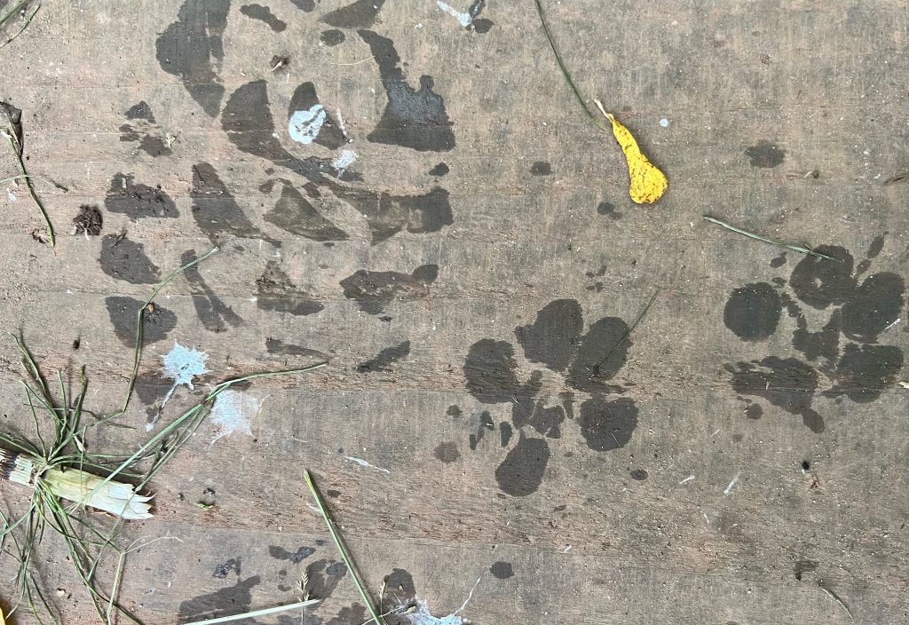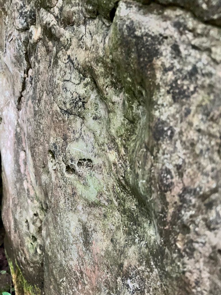 Und siehe da, gleich finde ich noch ein paar Abdrücke seltsamer Erdenbewohner, die sich hier auf dem Holz verewigt haben…