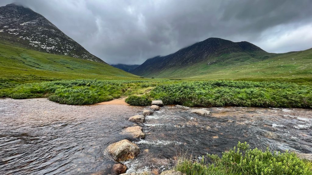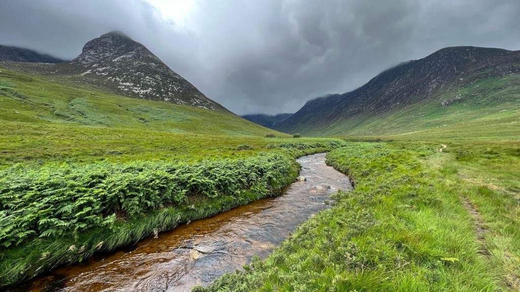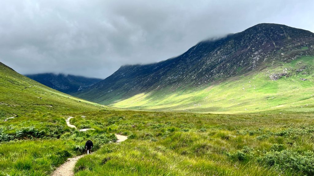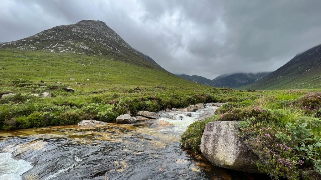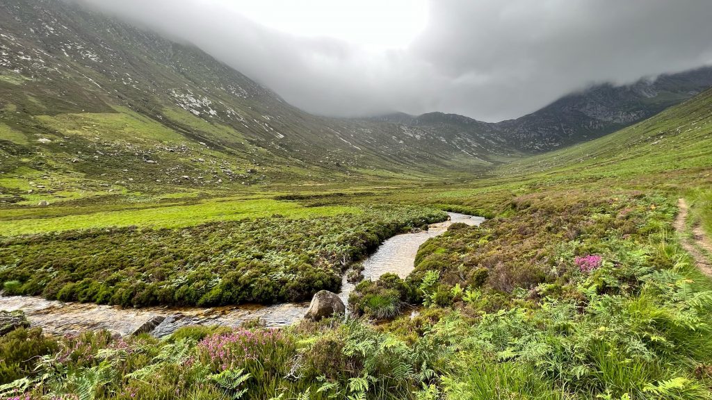 Und nun wird’s richtig schottisch. Grüne saftige Hänge, tiefhängende Wolken, rauschender Sannox… einfach herrlich.