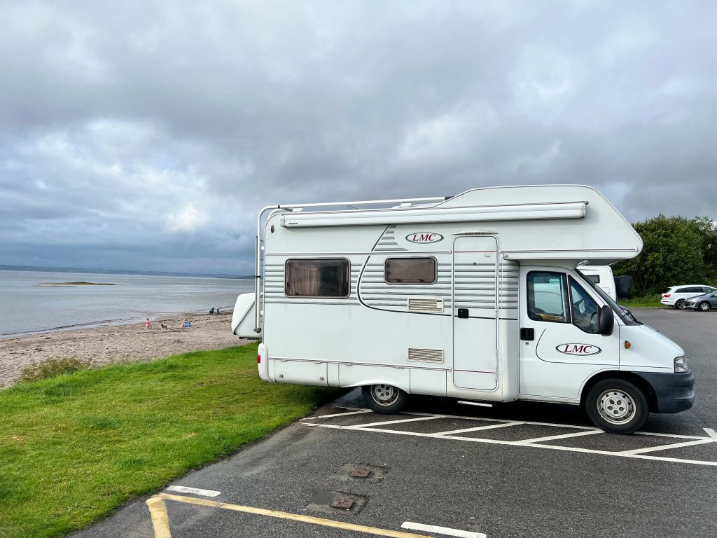 Ruhig gehts erstaunlicherweise auch in dieser Tourihochburg zu. Immerhin haben die ein Amphitheater und eine Destille. Aber der Rummel hält sich in Grenzen – zum Glück. Versorgt mit neuen Lebensmitteln schaukeln wir durch den Ort und finden 5km nördlich einen idealen Stellplatz für eine Nacht. Direkt am Strand, hundefreundlich (wie bisher alle schottischen Strände!), WC am Platz und bis 9:00 kostenlos. Ich bin happy und klatsch mir den Fisch in die Pfanne, der mich bei Lidl aus dem Kühlregal angelächelt hatte.
