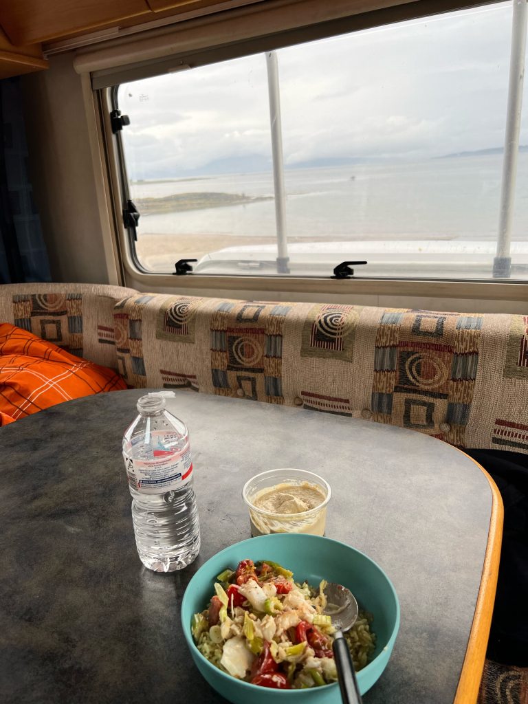 Gemütlich sitze ich nun hier, beobachte das Kommen und Gehen abendlicher Strandgäste trocken im Womo, Luna freut sich über jeden Hund und flitzt ab und zu zum Spielen raus, so geht ein schöner zu Ende. Schlaft gut und bleibt fröhlich 😃