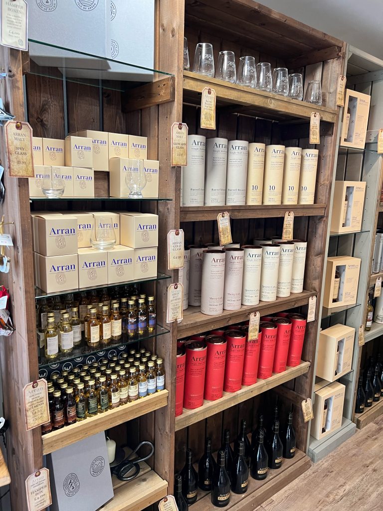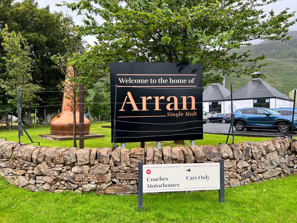 Der Regen nimmt zu, als wir am Talende umdrehen und den Rückweg antreten. Einmal durchbewegt klemme ich mich wieder hinters Lenkrad und zuckele gemütlich in Richtung Lochranza. Letzter Stopp vor der Fähre die Arran Destillery. Eine Führung hab ich nicht auf dem Plan, aber im Shop gibts schon mal die ersten Mitbringsel zu entdecken. Und übrigens – Her Majesty die Queen war auch schon hier…