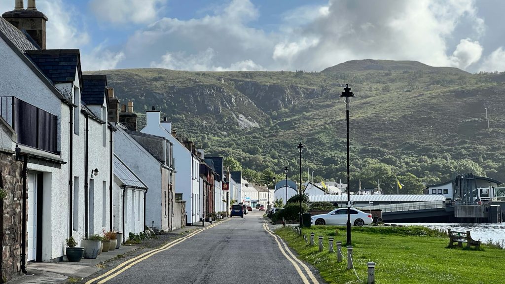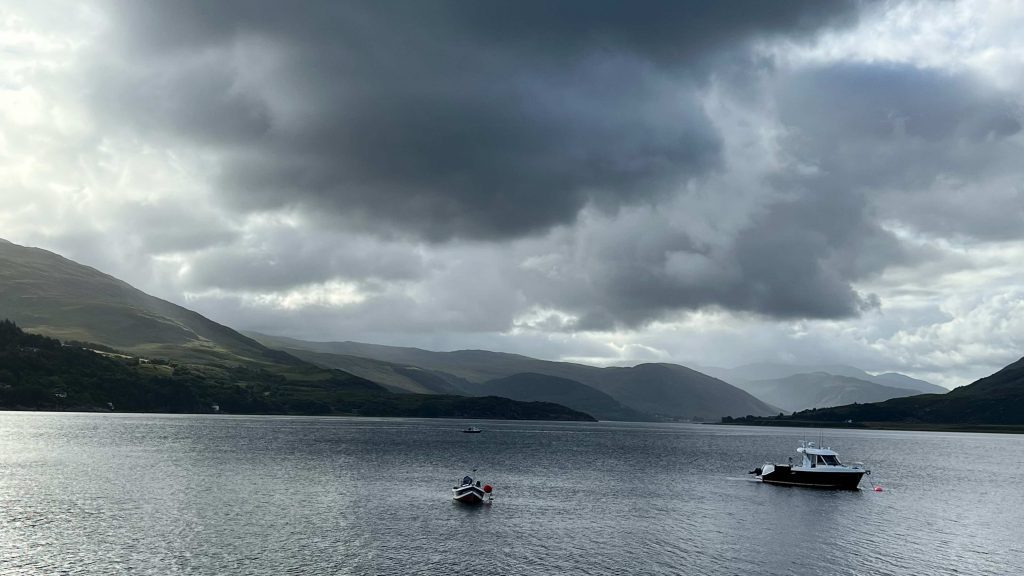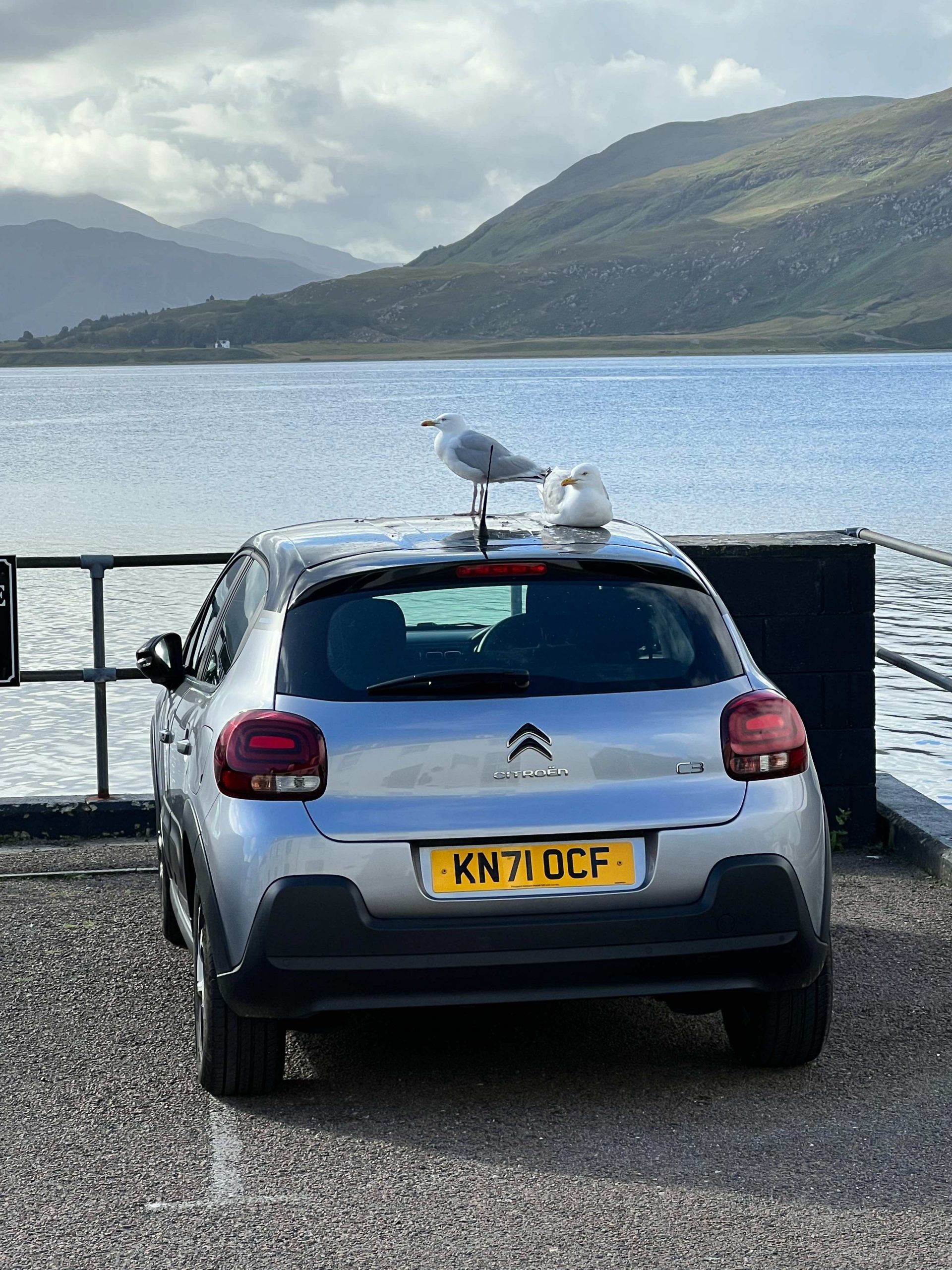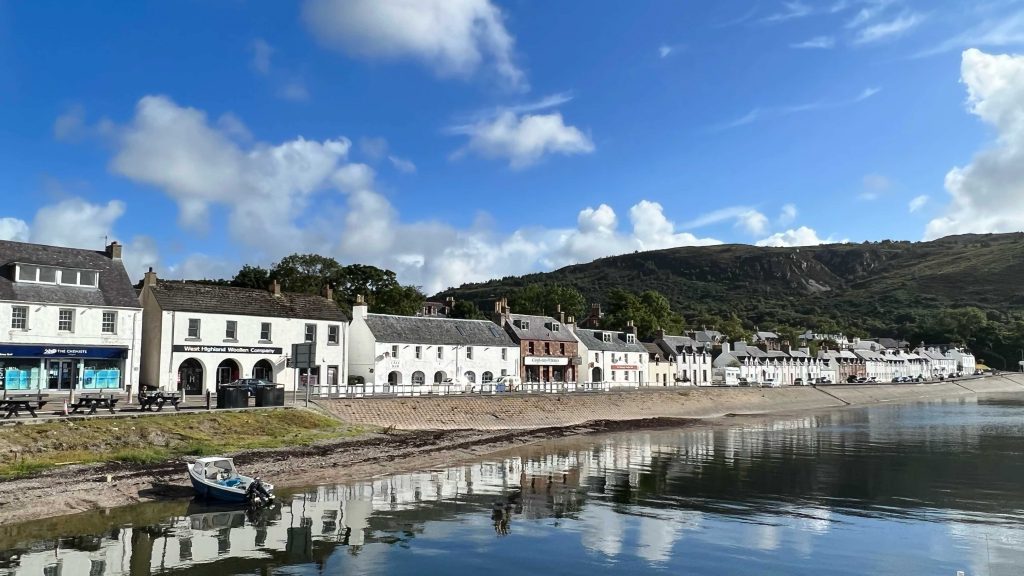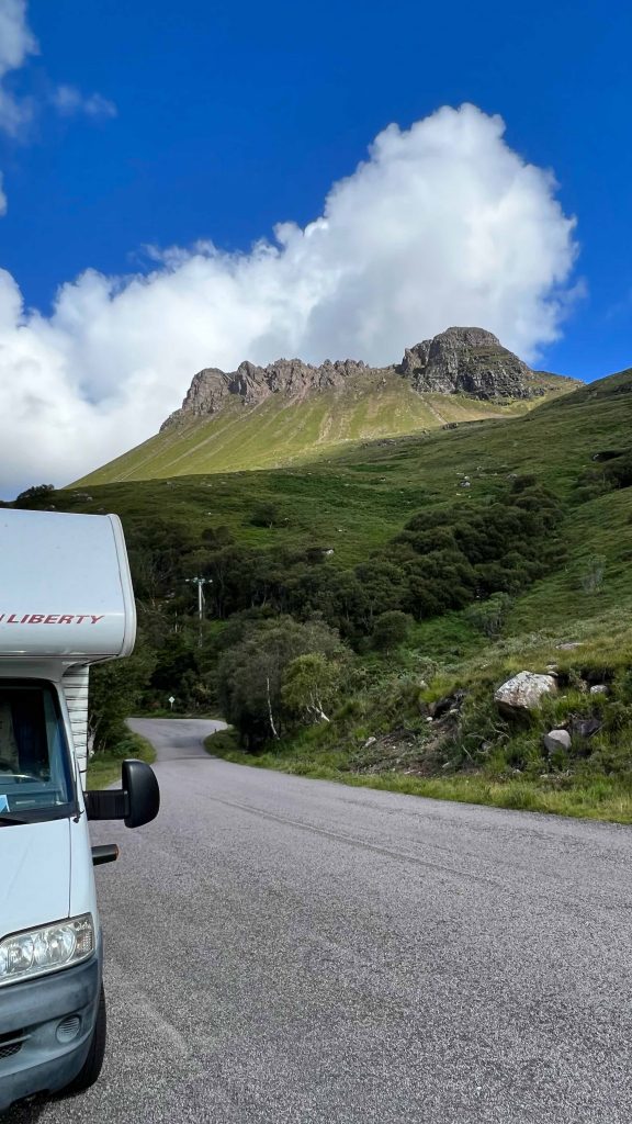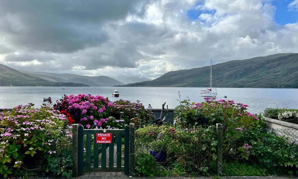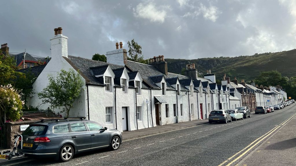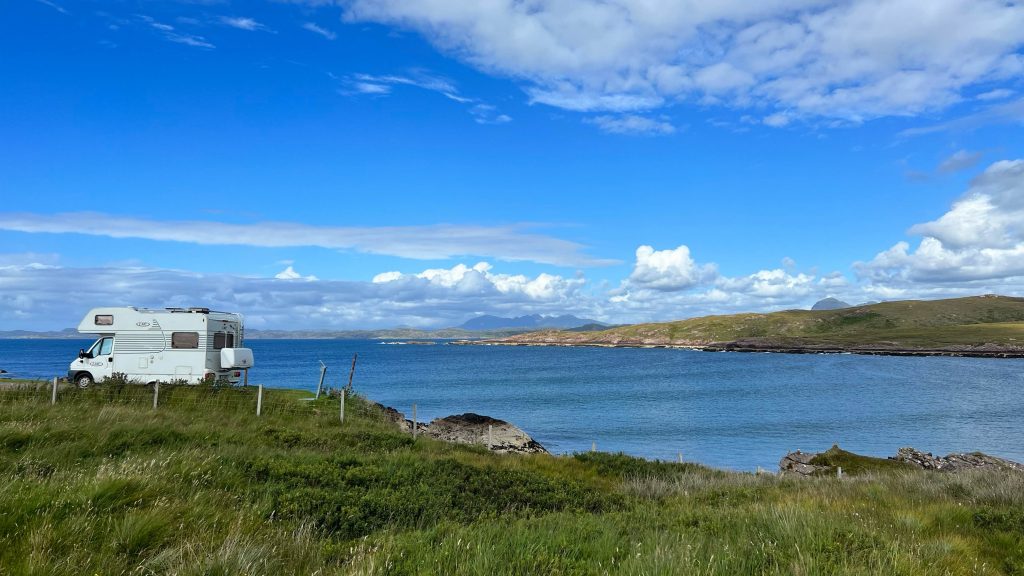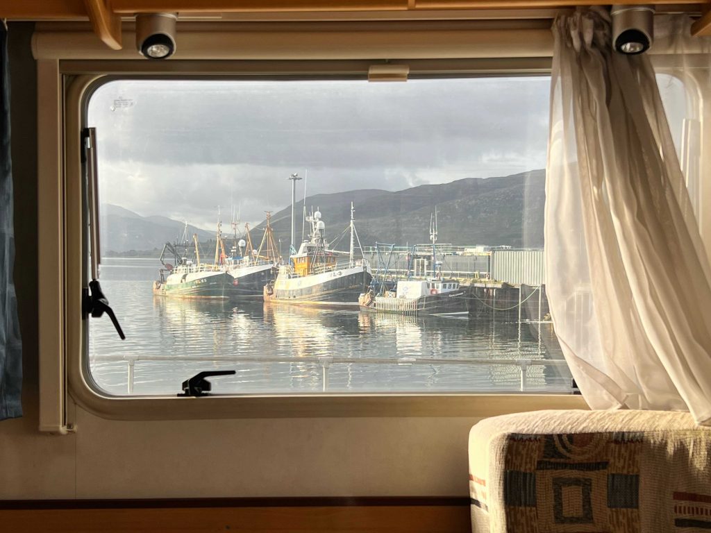 „Klapp“ macht und 6:15 Uhr die Türe eines Autos auf unserem kleinen Ministellplatz und ein Wanderer bricht mit Hund zur morgendlichen Runde auf. Wir sind dann mal munter und legen los. Das Frühstück wird auf Ullapool verlegt, da soll es eine Uferpromenade geben, auf der man bis 10:00 Uhr kostenlos stehen kann. Klingt nach Frühstück mit Ausblick. Der aus unserem Fenster ist aber auch nicht schlecht.