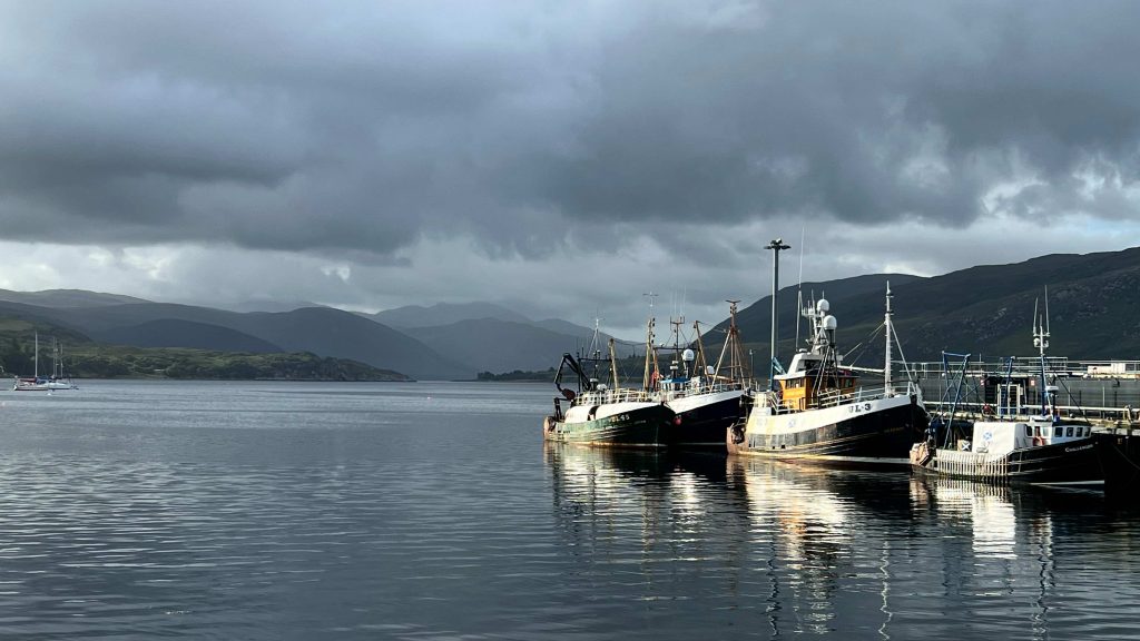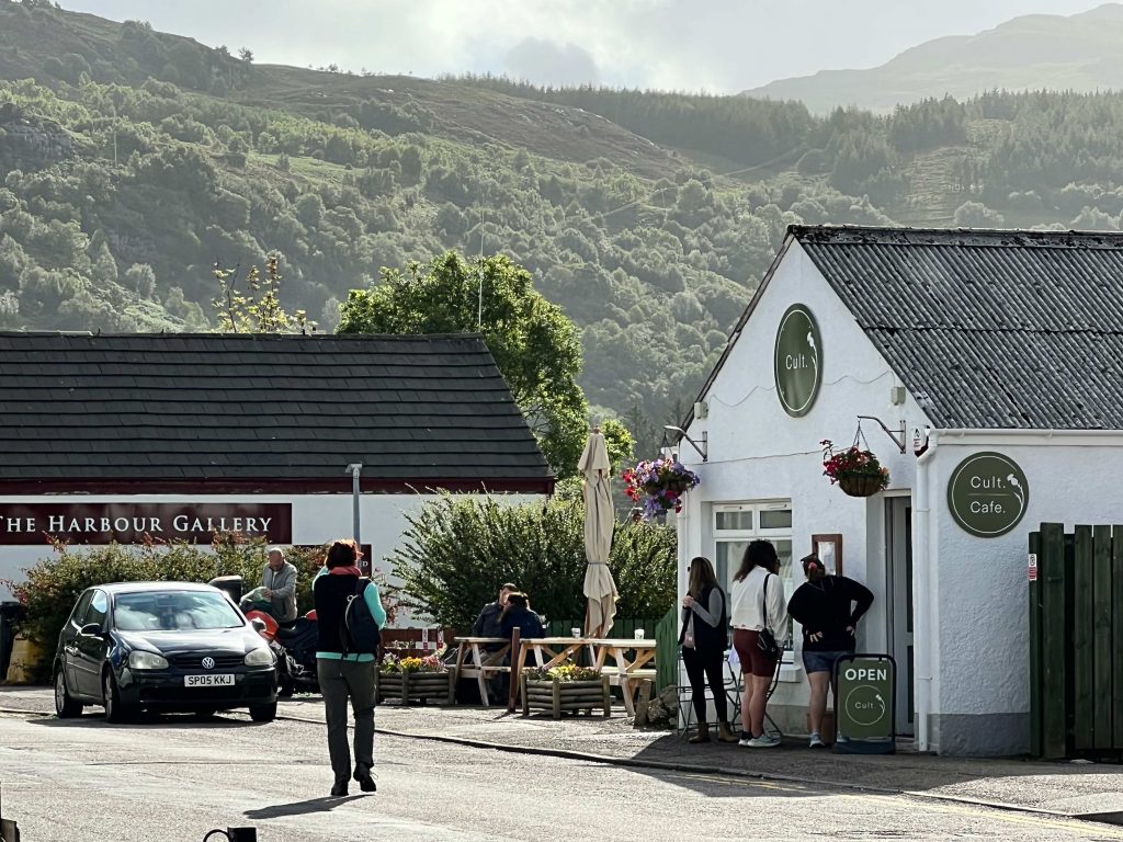 Ullapool ist ein niedliches und am Morgen noch sehr verschlafenes Städtchen, was vor allem durch seine Fährstation auf die äußeren Hebriden an Bedeutung gewinnt. Ich habe mich immer noch nicht entschlossen, ob ich da nun hin will. Nur im Cafe “Cult“ gibt es schon Frühstück aber ich hab ja mein eigenes Futter an Bord und diesen Ausblick hamse im “Cult“ nicht.