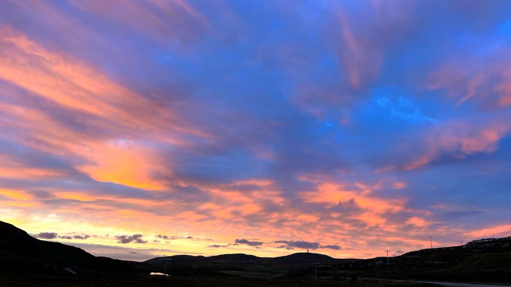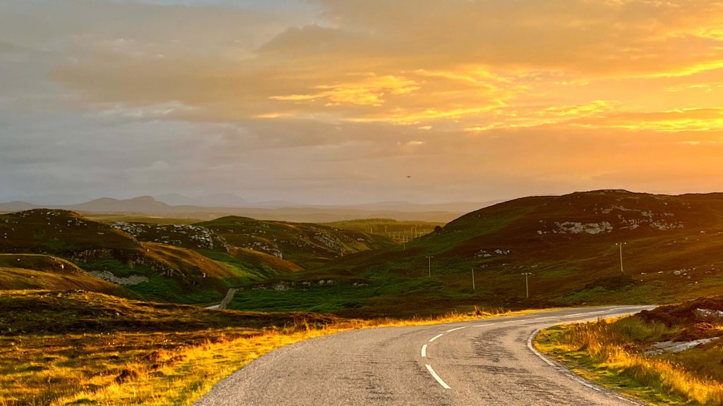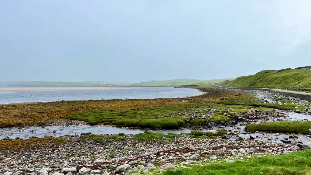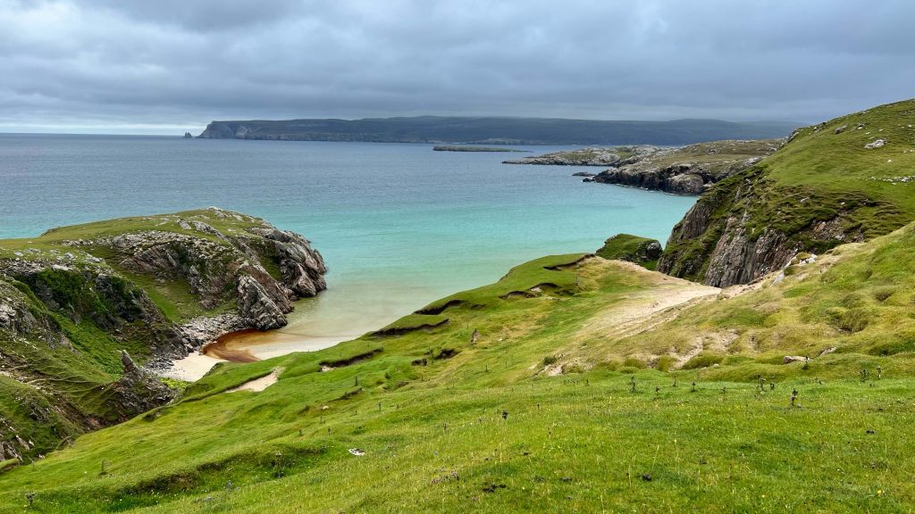 Wetteraussichten schlecht bis bescheiden. Es schüttet. Da wir aber sowieso nur langsam vorankommen, hier auf den einspurigen Straßen, zuckeln wir mal los. Erstes Ziel Durness, da gibts ne Höhle und ein Künstlerdorf.