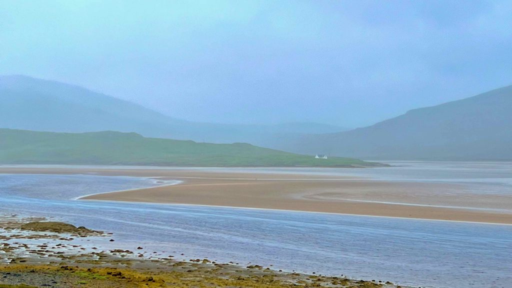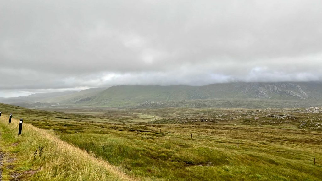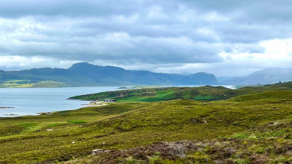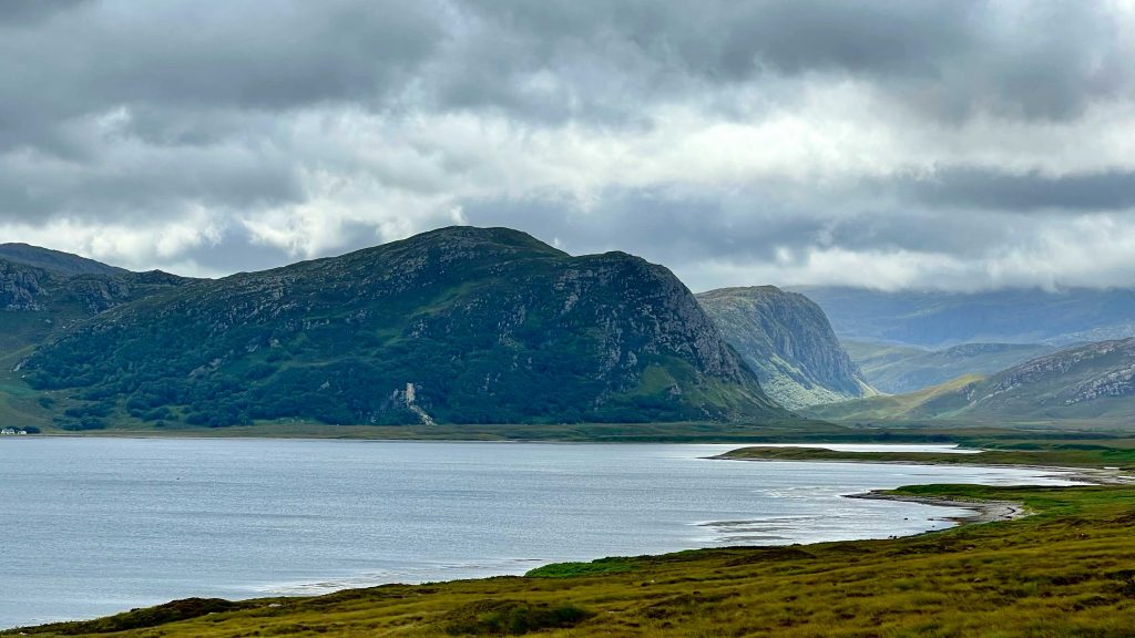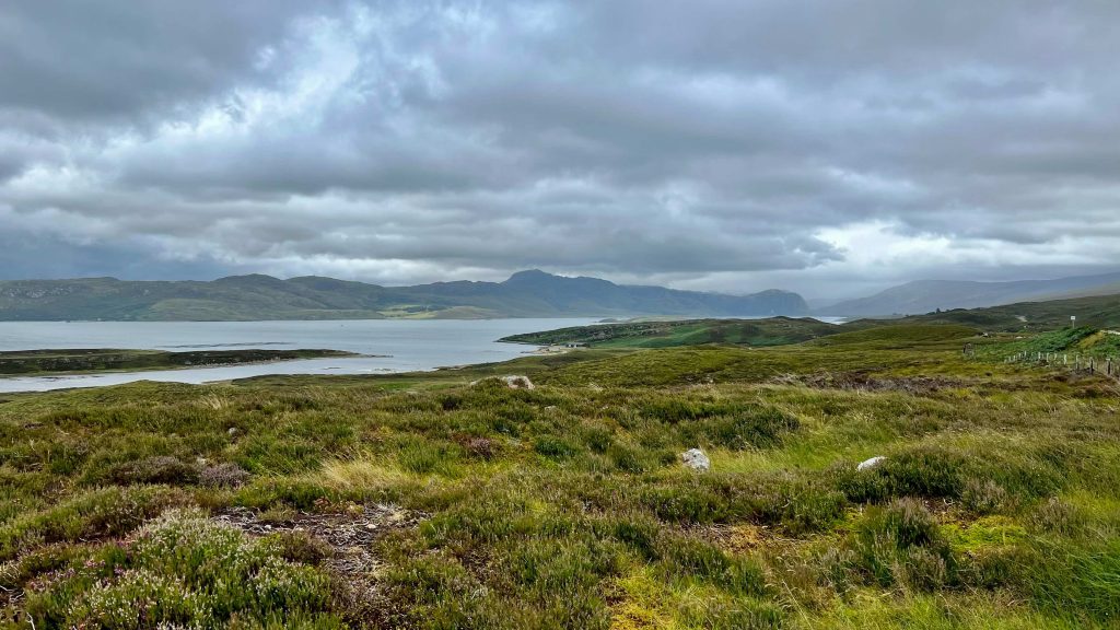Nun kommt der Loch Eriboll in Sicht, ein Meeresarm, der sich weit ins Land hinein erstreckt und bei dem selbst Radfahrer im Reiseführer gewarnt werden, die Anzahl der Meilen bei einer Umfahrung nicht zu unterschätzen. Schon als Womofahrer wird das schon langsam anstrengend, denn wir befinden uns weiterhin nur auf Single-Track-Roads mit Passing Places. Die Landschaft ist allerdings bei jedem Wetter faszinieren und nicht zum Sattsehen.