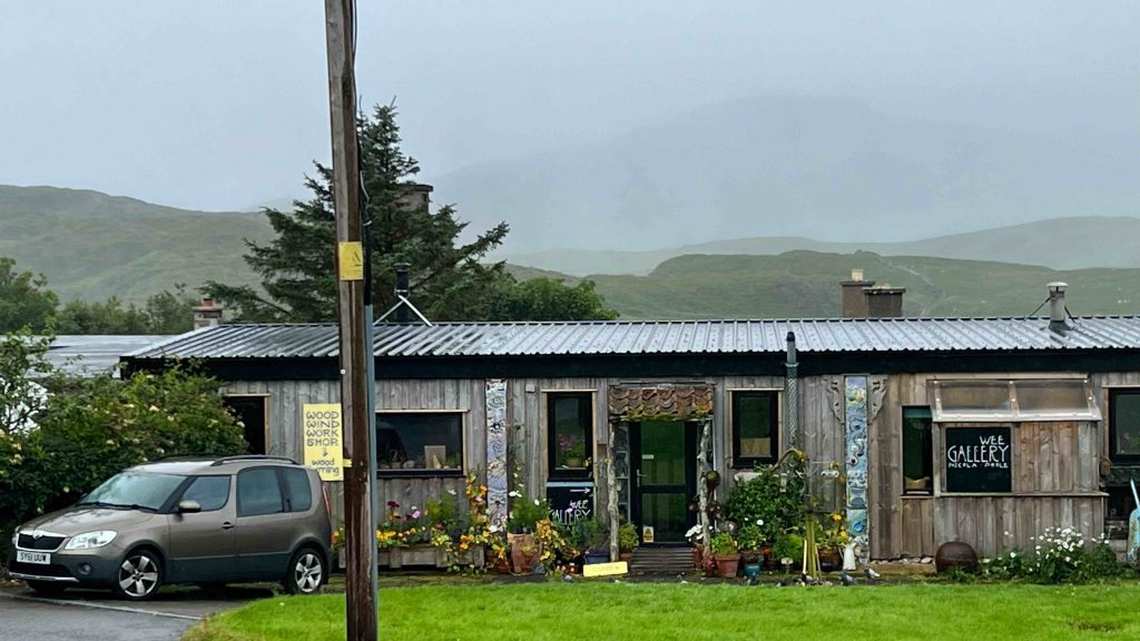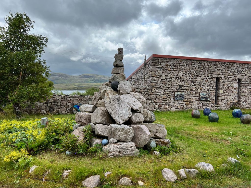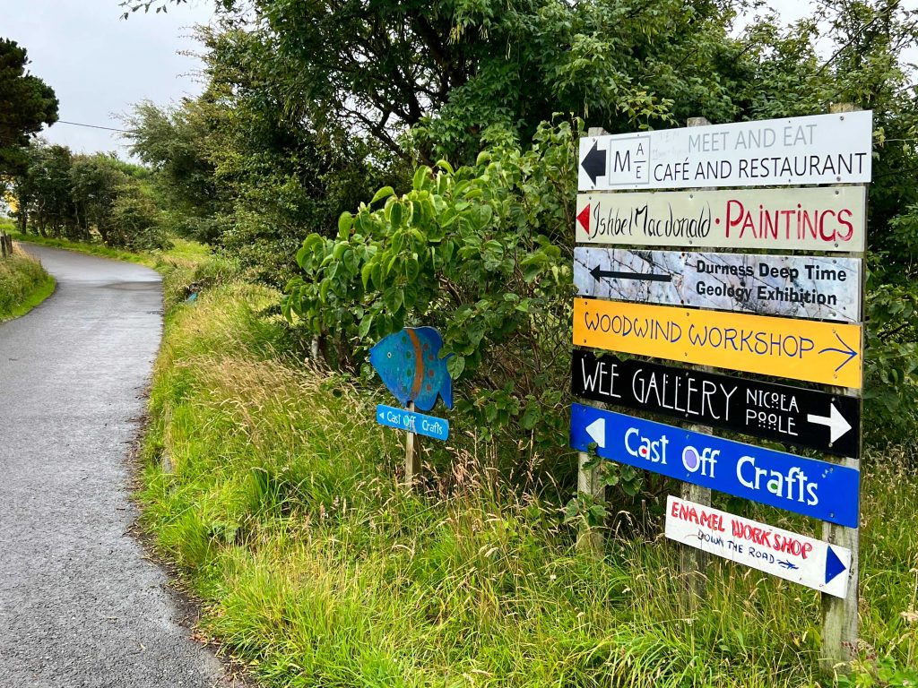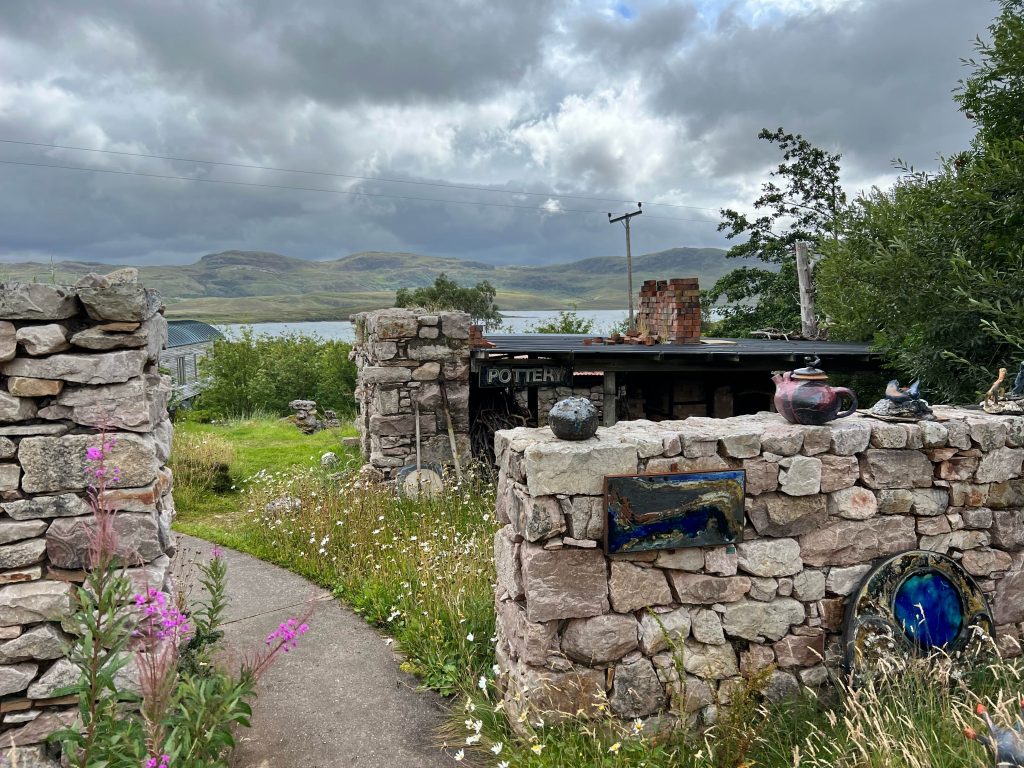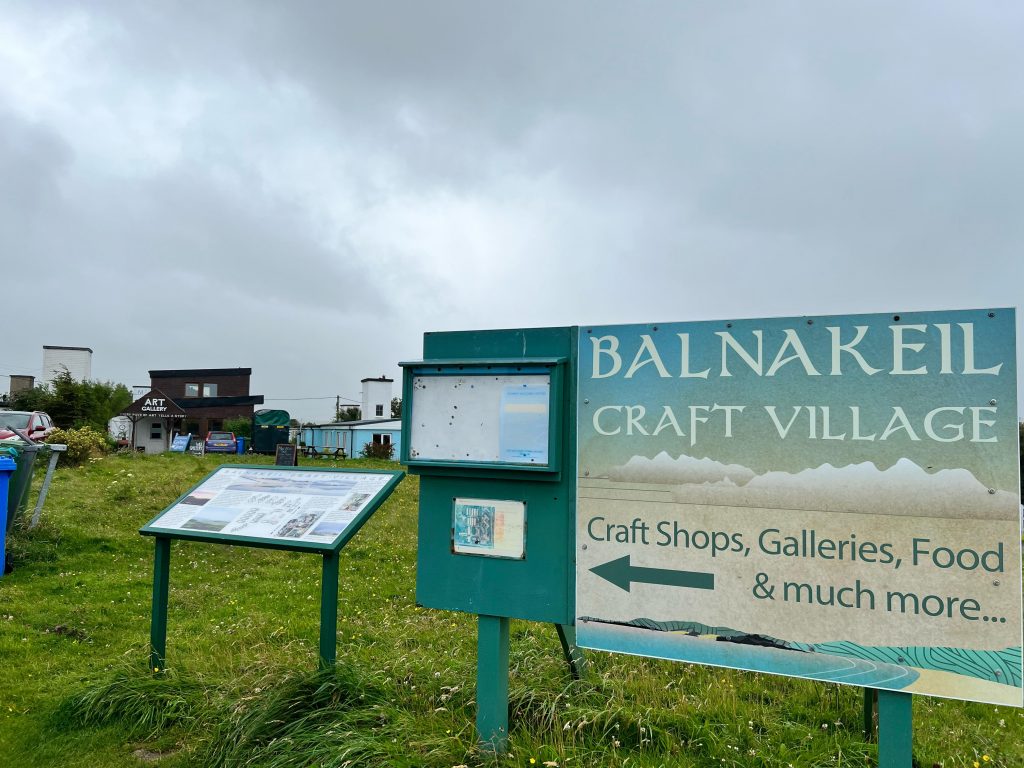 Balnakeil Craft Village besteht aus mehreren flachen Gebäuden. Früher, das heißt bis in die 60er Jahre, waren darin militärische Einrichtungen untergebracht. Dann übernahm eine Künstlerkommune das heruntergekommene Objekt und langsam siedelten sich neben Malern, Töpfern und Designern auch ein Chocolaterie und ein Cafe an.