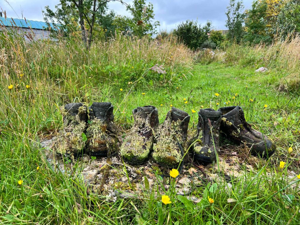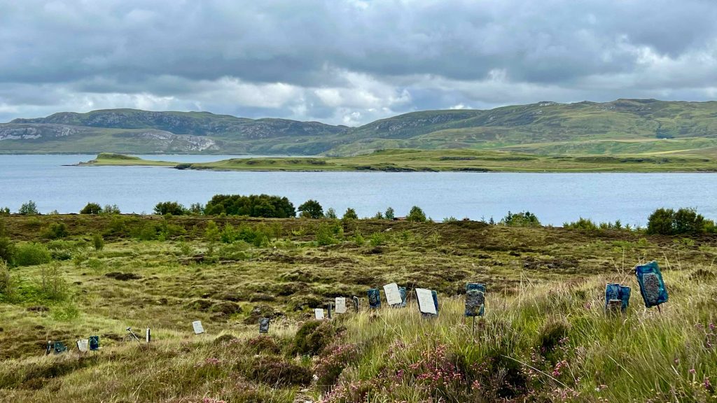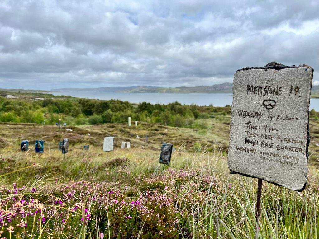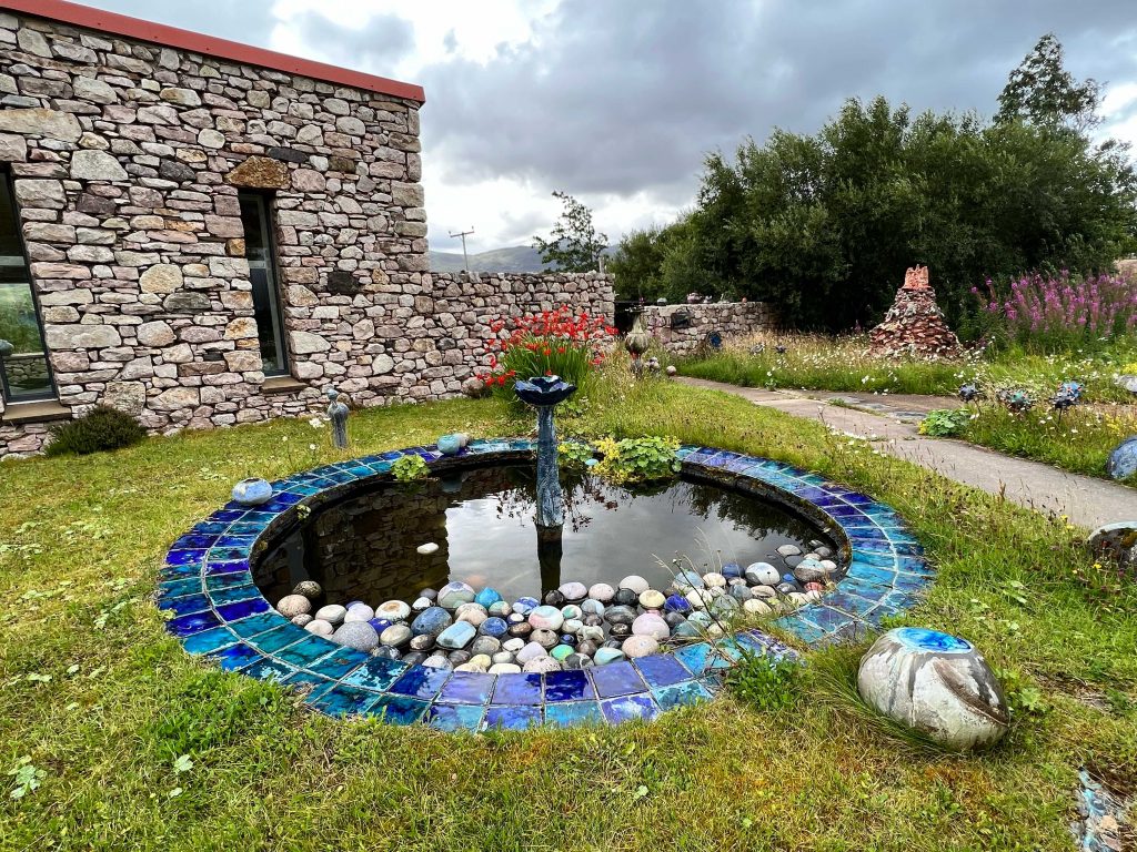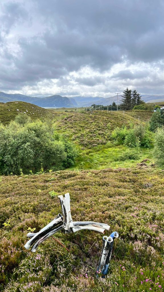 Rundherum ist eine Art „Skulpturenpark” entstanden, in dem ihre von der Natur inspirierten Werk mit ebendieser verschmelzen. Es gibt keinen Lageplan, keinen Wegweiser, man streicht einfach so durchs schottische Land und stößt ab un zu auf Kunstwerke. Aber zuerst stehe ich mal am Eingang und komme mir vor wie ein ungebetener Gast, denn obwohl ein großer Parkplatz angelegt ist, steht keiner darauf. Das Tor ist geöffnet und ihre Webseite lädt ausdrücklich zum Besuch des Gartens ein.